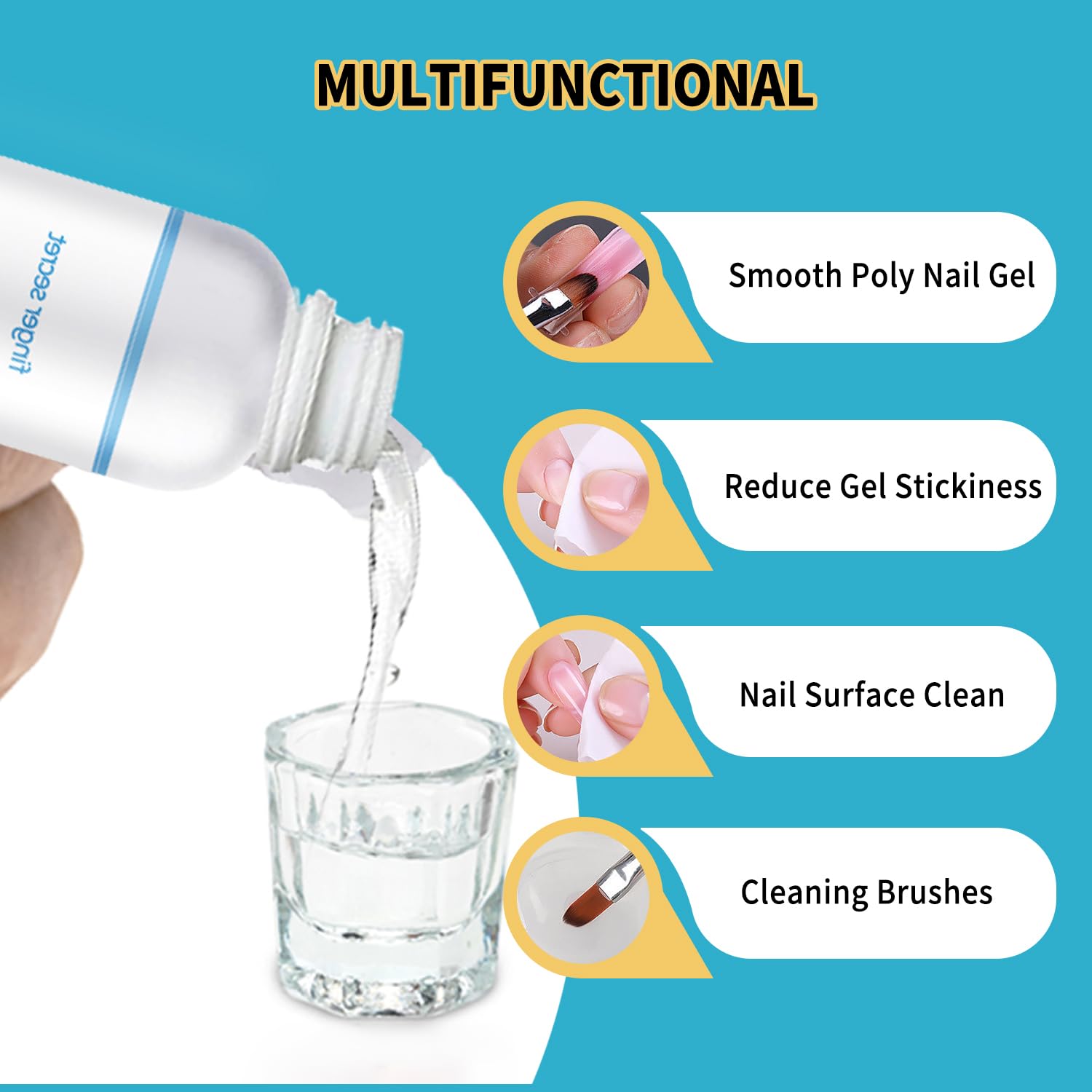 Slip Solution 4Fl.Oz Slip Solution Nail Extension Gel Liquid Slip Solution for Poly Gel Nails with Brush Spatula Glass Cup Nail Cleaning pads Gel Cleanser for Nails