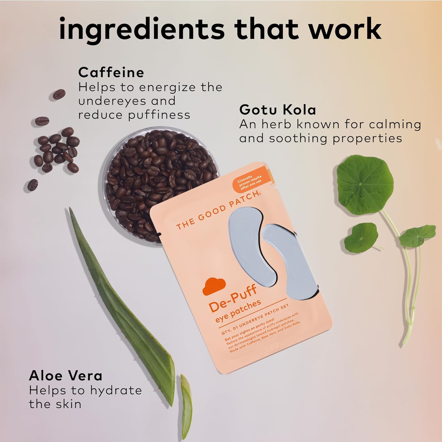 The Good Patch De-Puff Cooling Hydrogel Under Eye Patches for Puffy Eyes and Under Eye Bags, Made with Caffeine, Aloe Vera, Gotu Kola, Clinically Proven (18 Total Patch Sets)