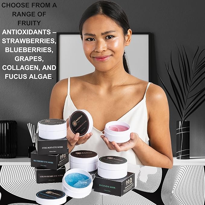 - 🌟 INSTANT RADIANCE: Witness visible improvements in just a few uses. Our cooling gel formula renews your eyes, soothen dark circles and fatigue. Experience a soft, moisturized effect, perfect for a beauty and self-care regimen. Choose from a range of fruity flavors – strawberries, blueberries, grapes, collagen, and fucus algae. A taste of the exotic in every patch. Enhance your self-care and skincare experience with diversity.