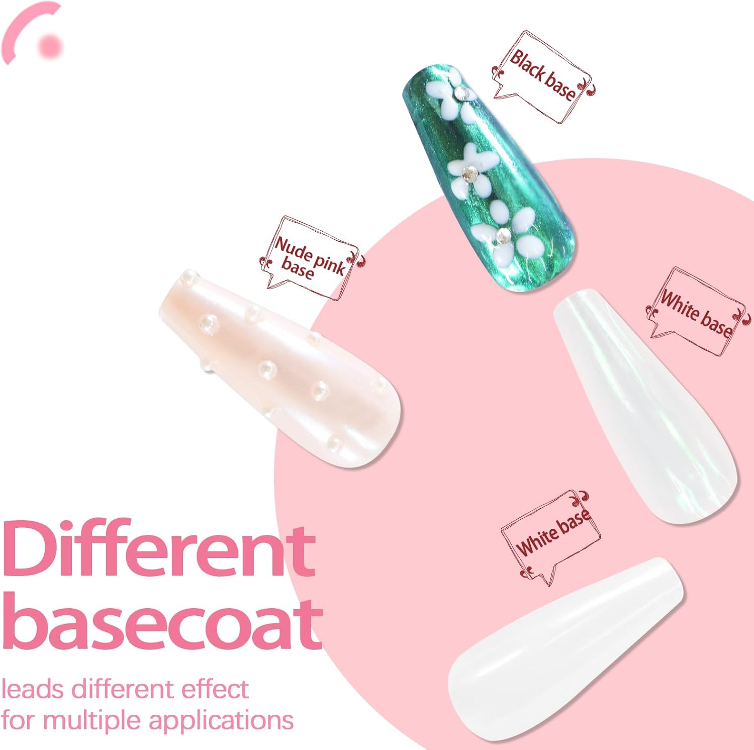 - White Pearl Chrome Nail Powder: Allstarry nail chrome powder is an ideal gift for achieving a stunning ice transparent and glossy glazed donut nail effect. For pearl chrome nails, it is recommended to use a nude or translucent base to enhance the pearl luster. Using as mirror chrome nail powder, applying it over a black base will create a luxuriant metallic nail effect.
