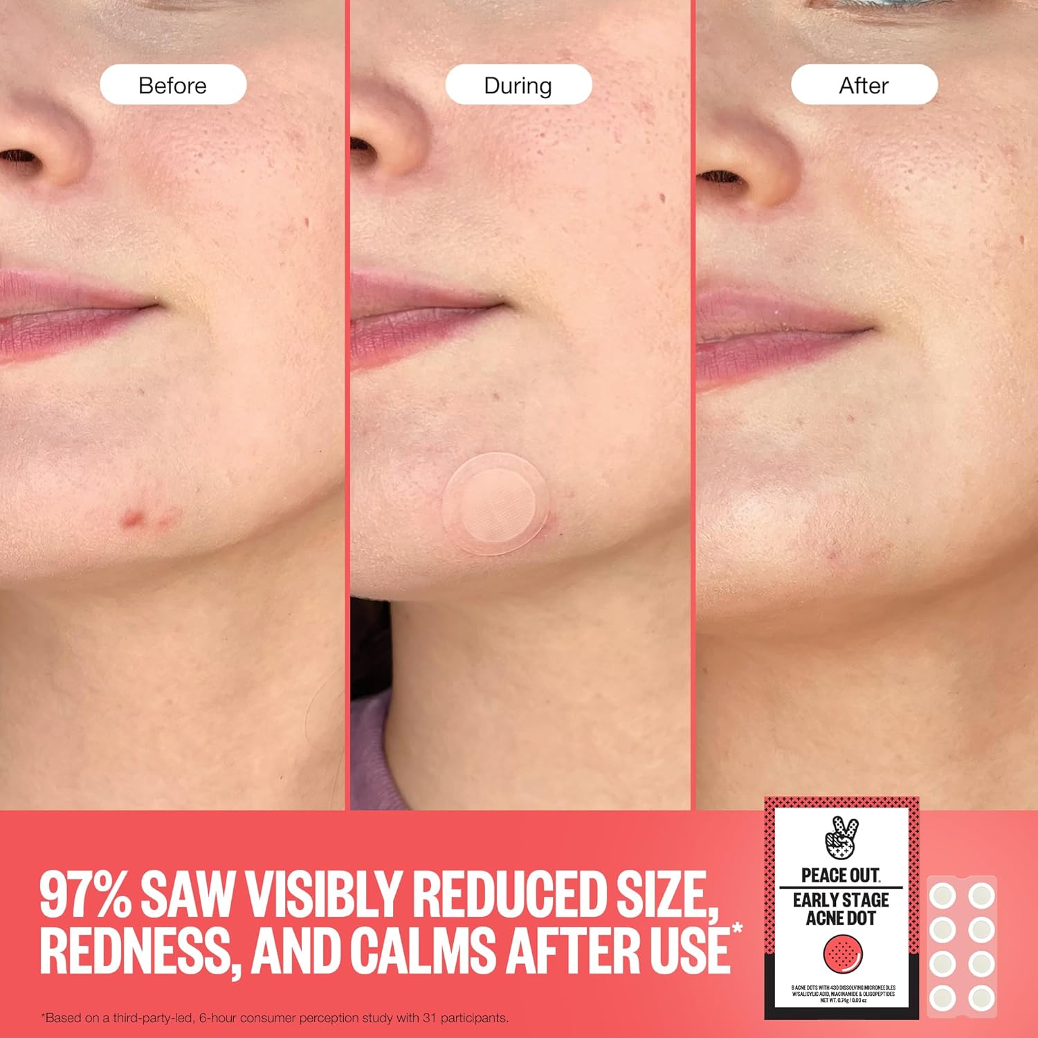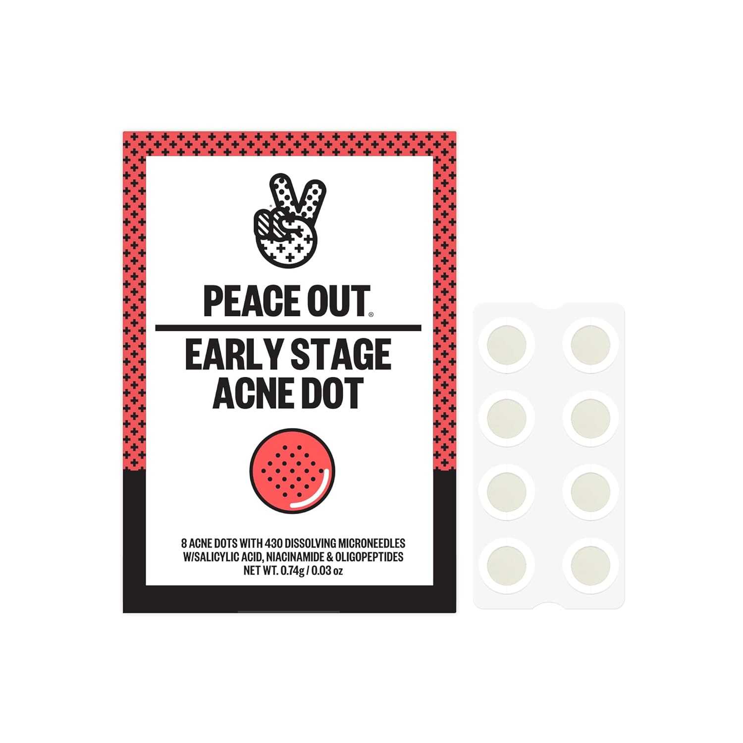 PEACE OUT Early Stage Acne Dots Helps Target Blemishes Below the Surface, Hydrocolloid Pimple Patches Minimize Bumps Before They Appear with Dissolving Microneedles, Salicylic Acid, 8 Count