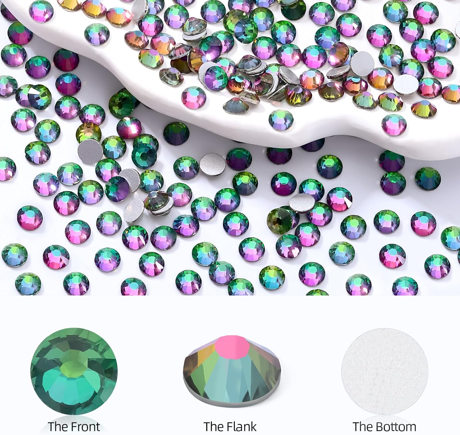 Green Volcano Flatback Rhinestones, Glass Rhinestones for Nail Art and Craft, Glue Fix, Loose Crystal Gemstones(Green Volcano, SS20, 1440pcs, 4.6-4.8mm)