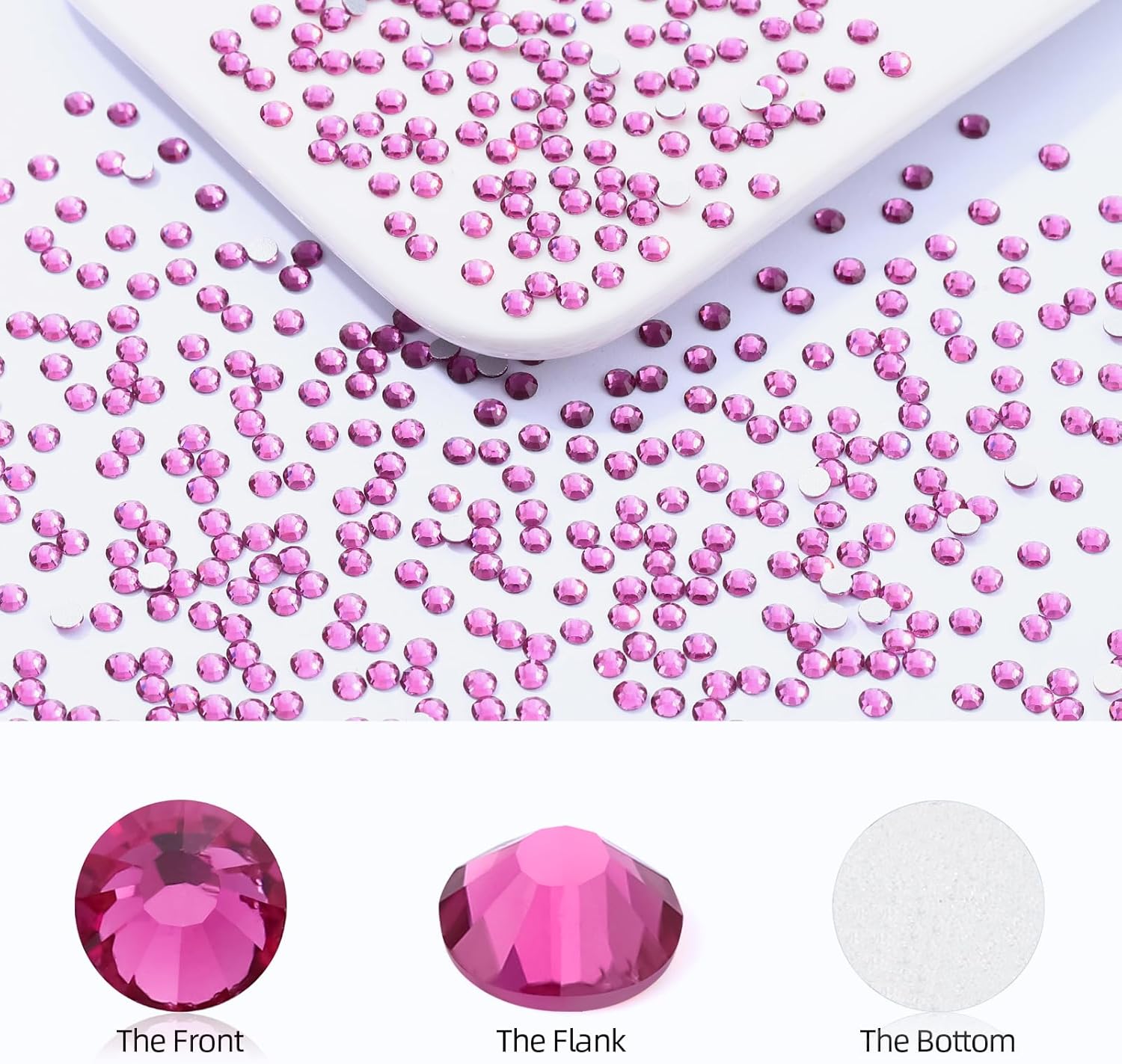 Fuchsia Flatback Rhinestones, Glass Rhinestones for Nail Art and Craft, Glue Fix, Loose Crystal Gemstones(Fuchsia, SS8, 1440pcs, 2.3-2.5mm)