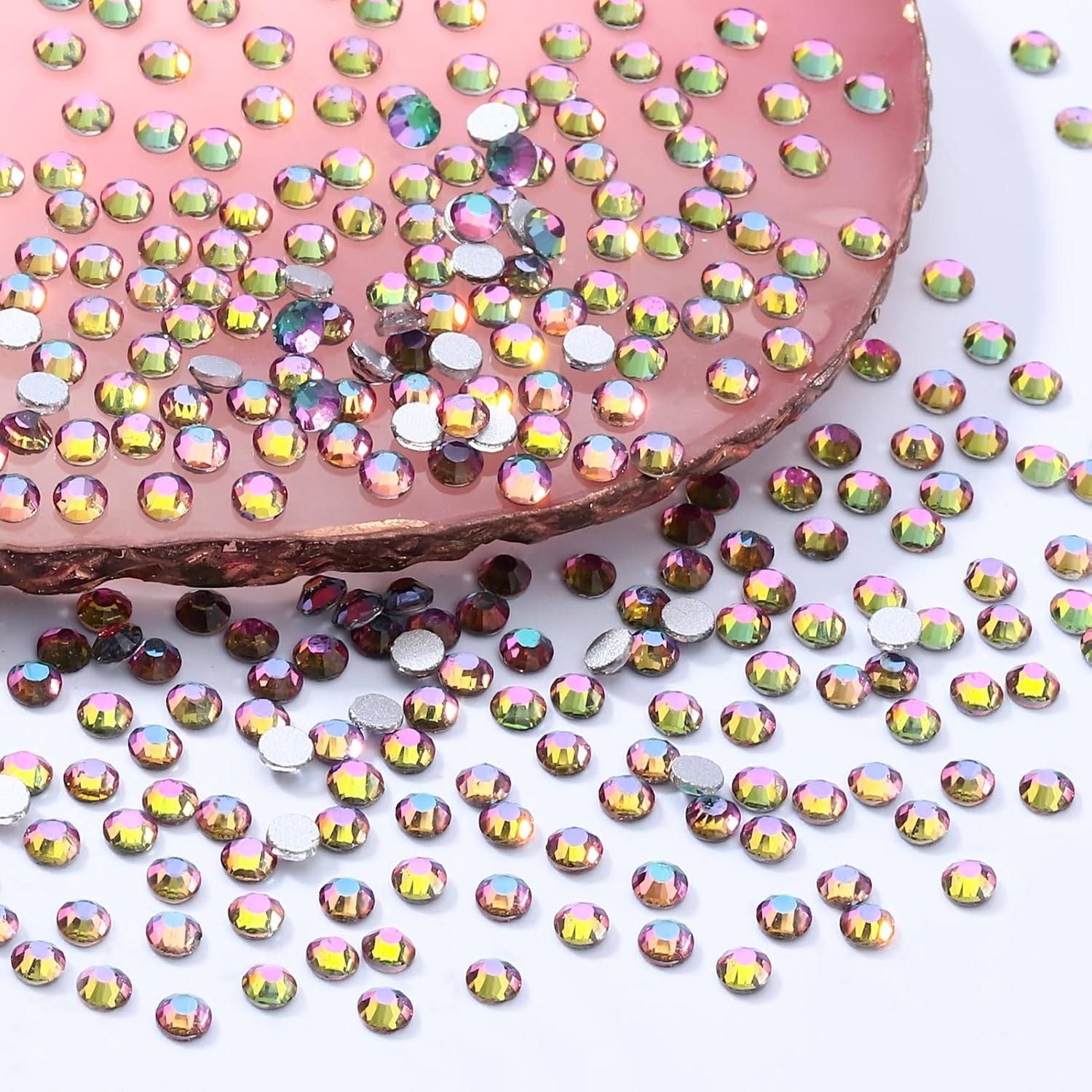 Green Volcano Flatback Rhinestones, Glass Rhinestones for Nail Art and Craft, Glue Fix, Loose Crystal Gemstones(Green Volcano, SS10, 1440pcs, 2.7-2.8mm)