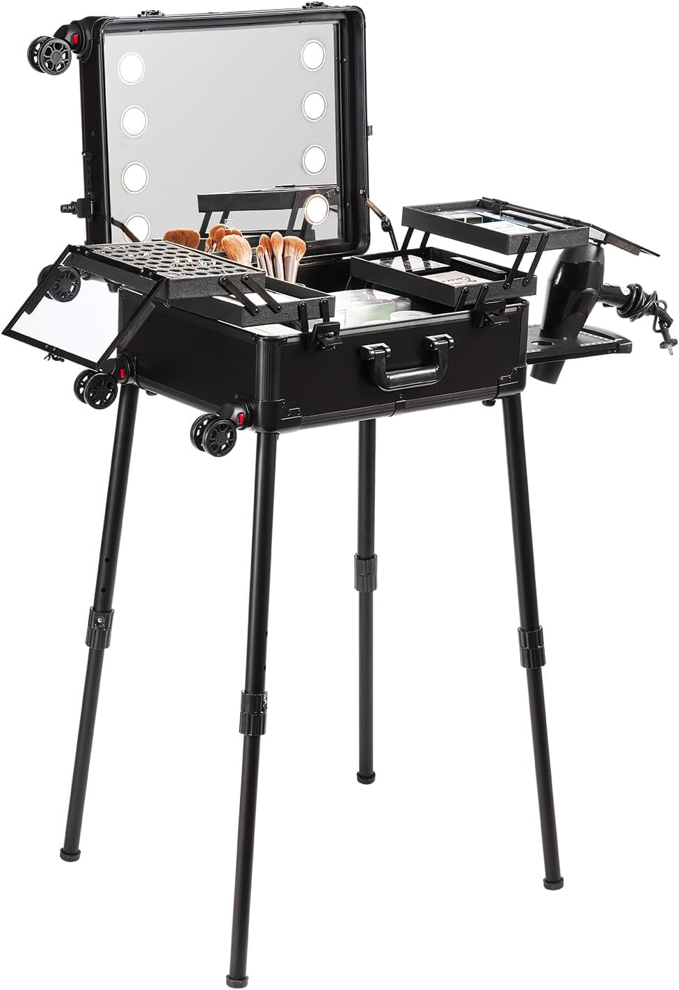 - Lightweight and Portable: The makeup case weighs only 24.9 pounds/11.3 kilograms and is equipped with an adjustable pull rod and 360° rotating large-size wheels, making it easy to carry. You can easily fit it in the trunk of your car or take it on a plane, making it your mobile makeup workstation.