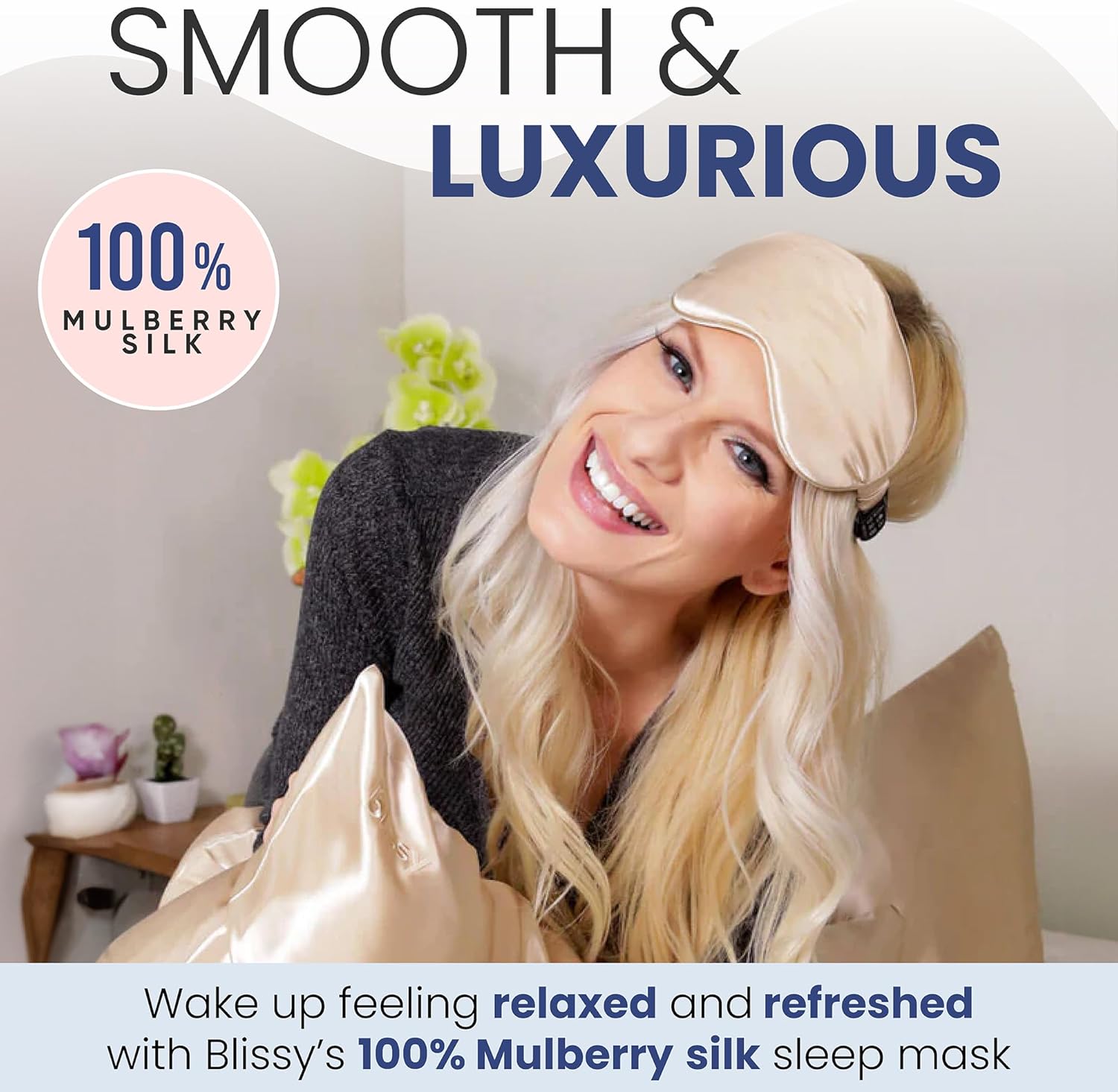 - TOTAL BLACKOUT - If you're looking to completely block out the light, our Blissy Silk Sleep Mask is perfect for you! Made with 100% pure Mulberry silk and 22 momme 6A grade fibers, this mask will keep the light out and help you get a good night's sleep.