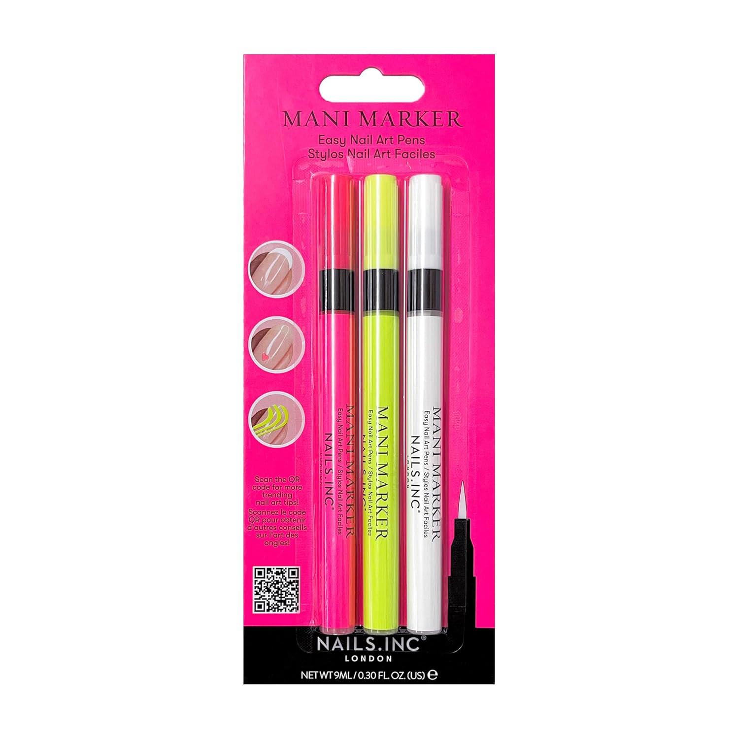 Nails Inc Neon Mani Marker Nail Art Pen Trio, DIY Nail Drawings, Fine Tip, Thin Brush, No Bleed, Manicure Tools, Drawing & Painting, Long Lasting, Vegan, Cruelty Free, Nail Art Pen, 3 Piece Set