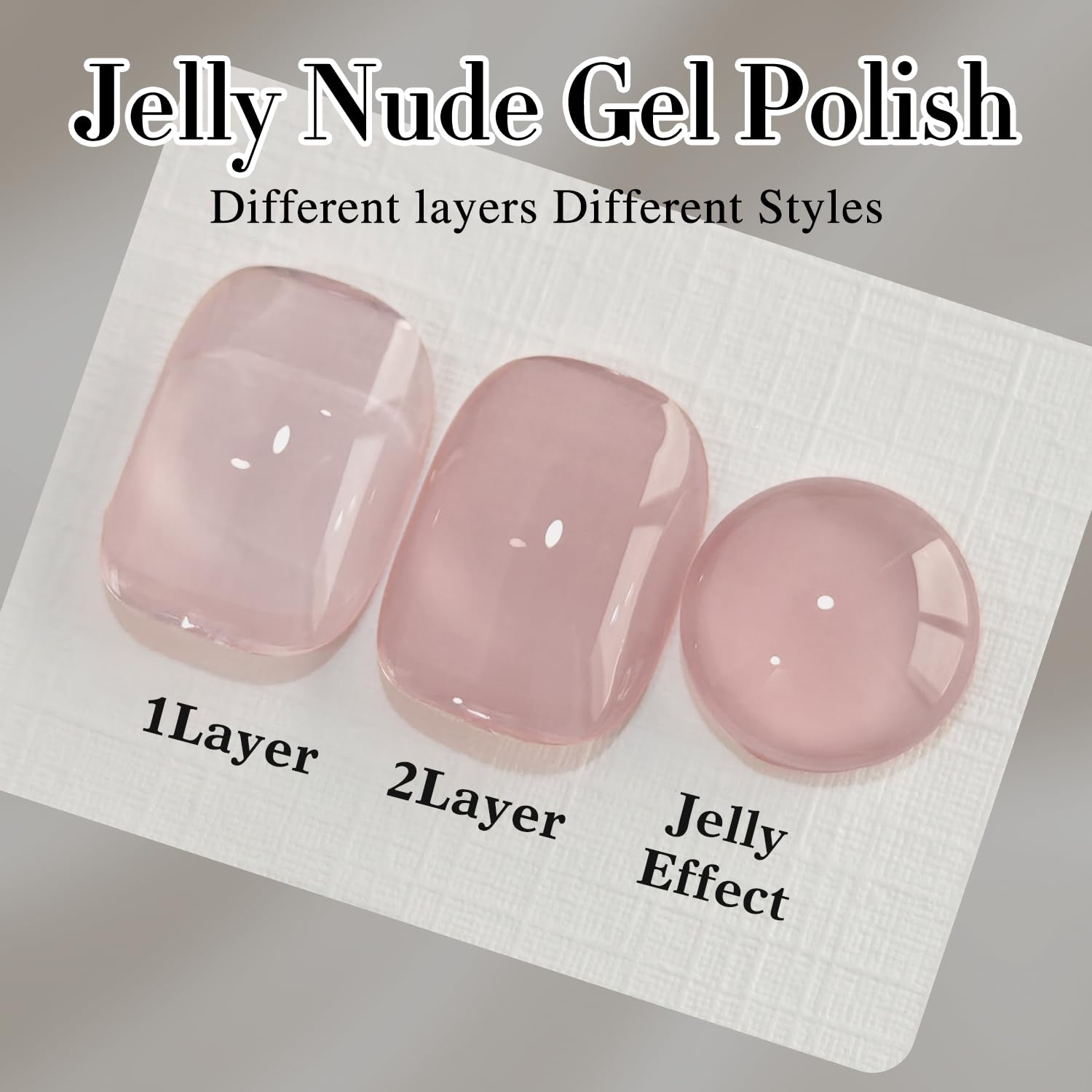 - Jelly Milky GEL POLISH: 1 pc 15ml jelly gel polish, different layers with different effects,need to be cured under UV or LED Lamp for 60-120s. Must apply with Base Gel and Top Coat. Please shake the bottle or warm it with hot water before use, to acheive a better effect.