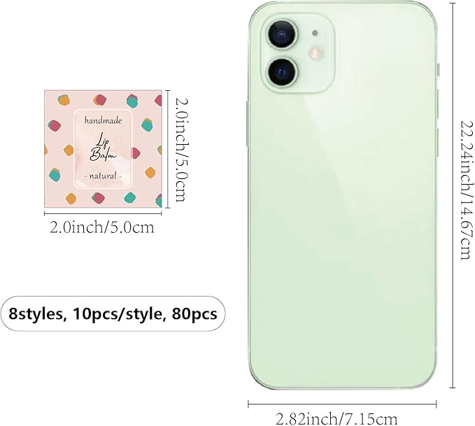 - SIZE: square custom lip balm diy label sticker about 1.96×1.96inch (5x5cm), 8 styles, 10pcs/style, 80pcs/set.