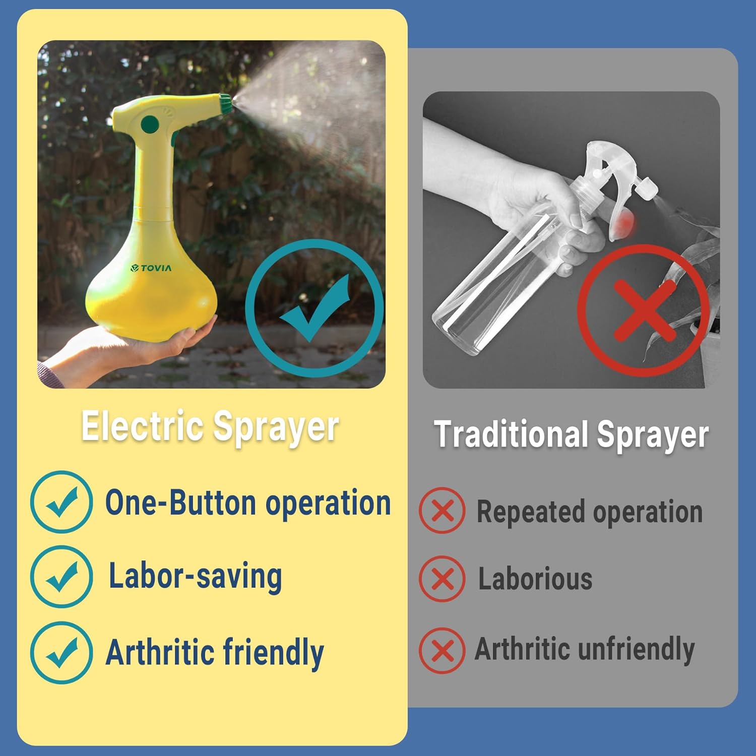 T TOVIA: Garden Sprayer 1 Liter Battery Spray Bottle Powered Electric, Rechargeable, Portable Garden , Plant Mister Spray Bottle , Outdoor and Indoor Plants,Cleans and Gardens, Handheld Powered