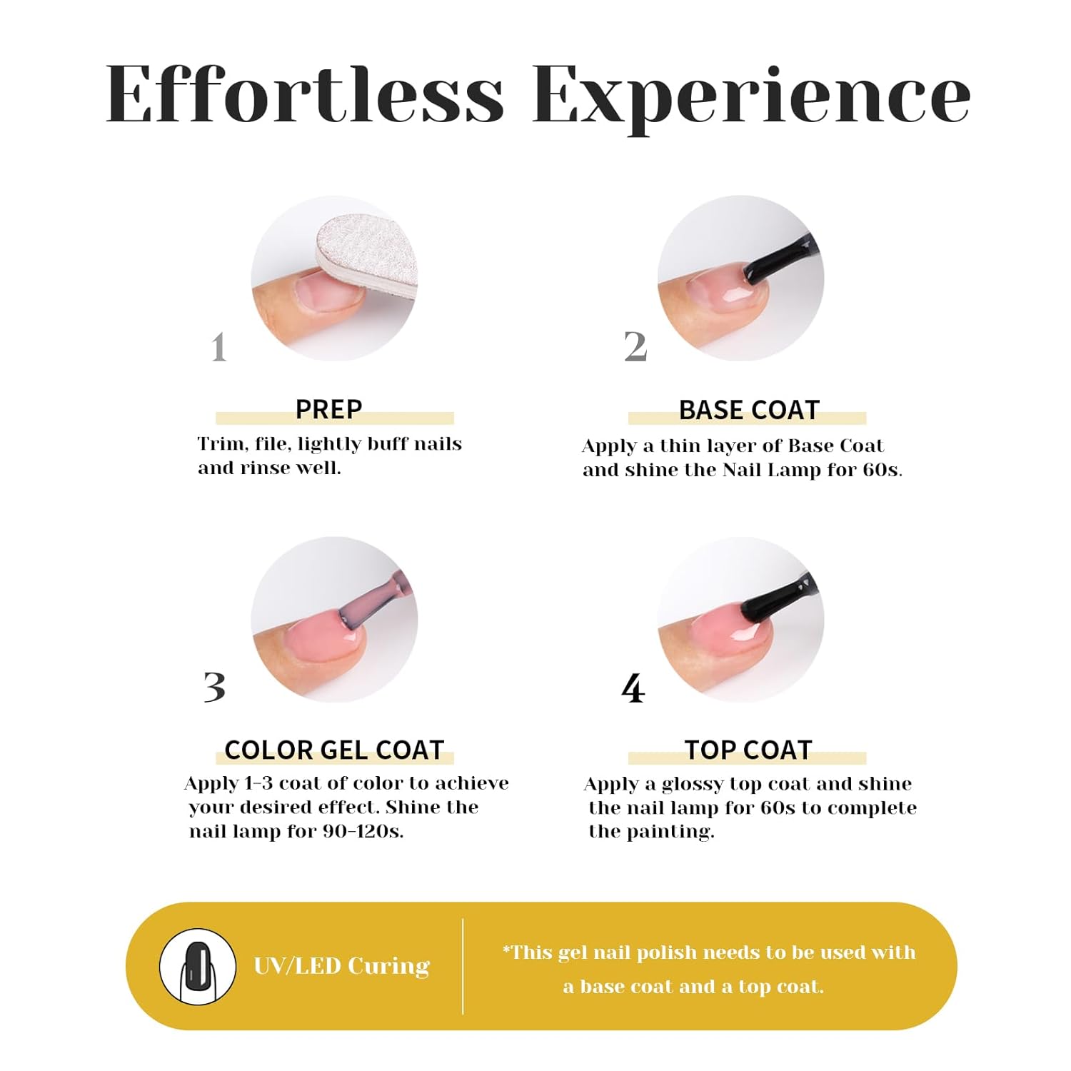 - Professional salon-quality: Experience professional-quality results in the comfort of your own home with this high-quality gel nail polish. Achieve salon-worthy nails without the hassle and expense of frequent salon visits.