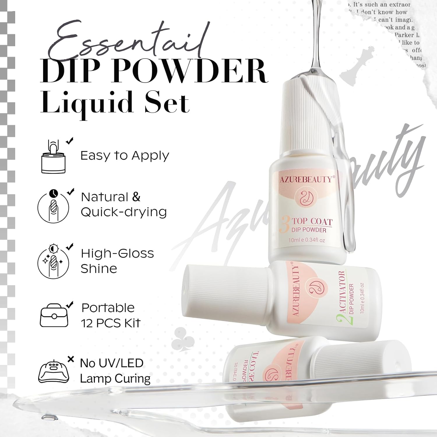 - Superior Quality & Long Lasting: AZUREBEAUTY dip powder nail kit is long-lasting and anti-chipping, anti-peel off. The color is full and natural-looking, light, and has an impeccable shine finish. It can keep the nail art gorgeous and shiny for more than about 28 days with proper application