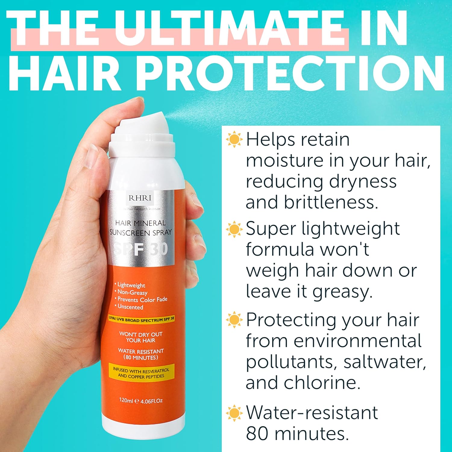 Premium SPF 30 Hair Sunscreen | Aerosol Spray | UV Protection for Scalp & Hair | Non-Greasy | Prevents Sunburn & Color Fade | 4.06 fl oz