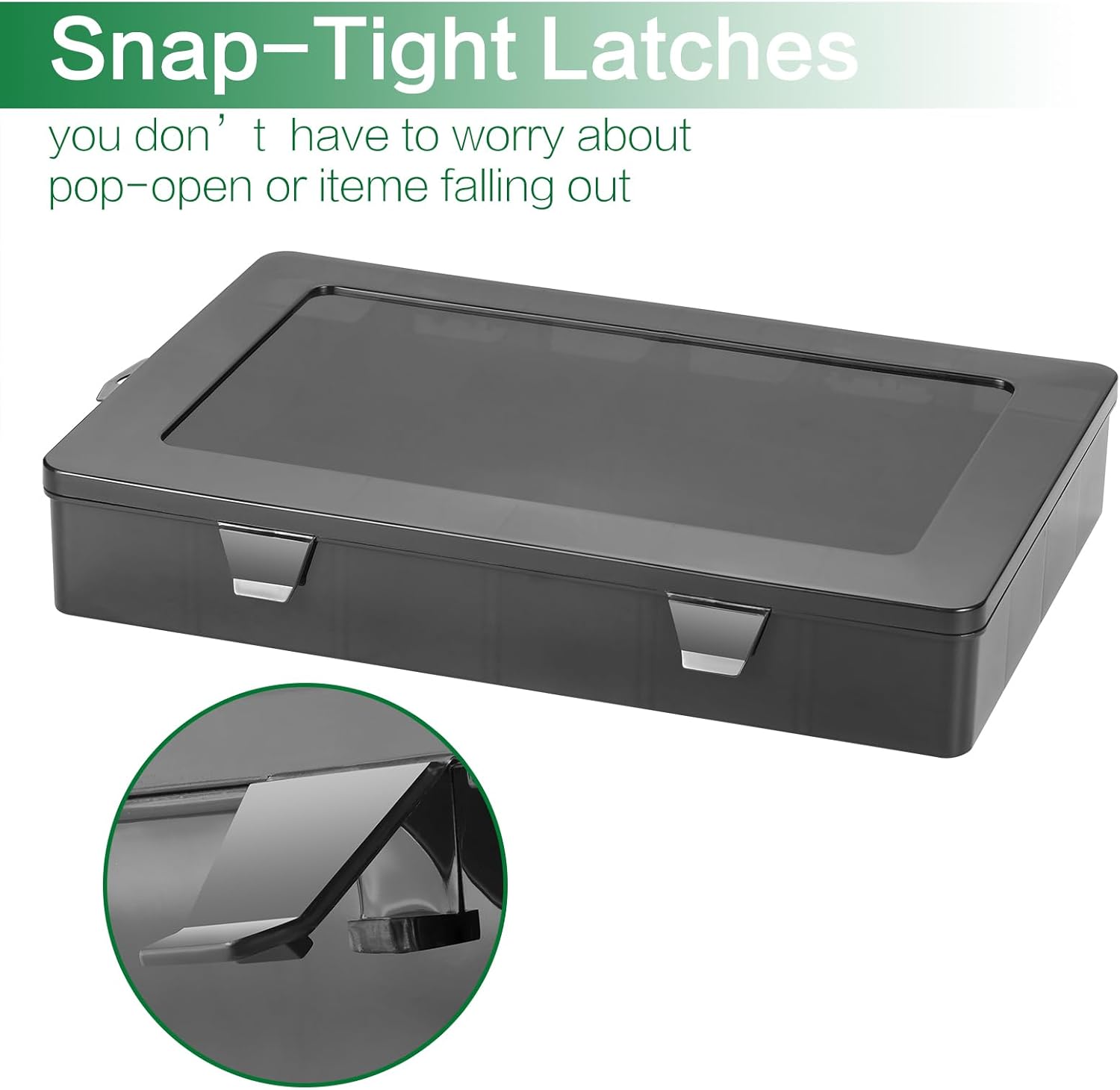 Large 24 Grids Plastic Organizer Box Adjustable Dividers,Clear Storage Box for Jewelry, Art DIY Crafts, Washi Tapes, Beads and Small Parts(Black,3Pack)