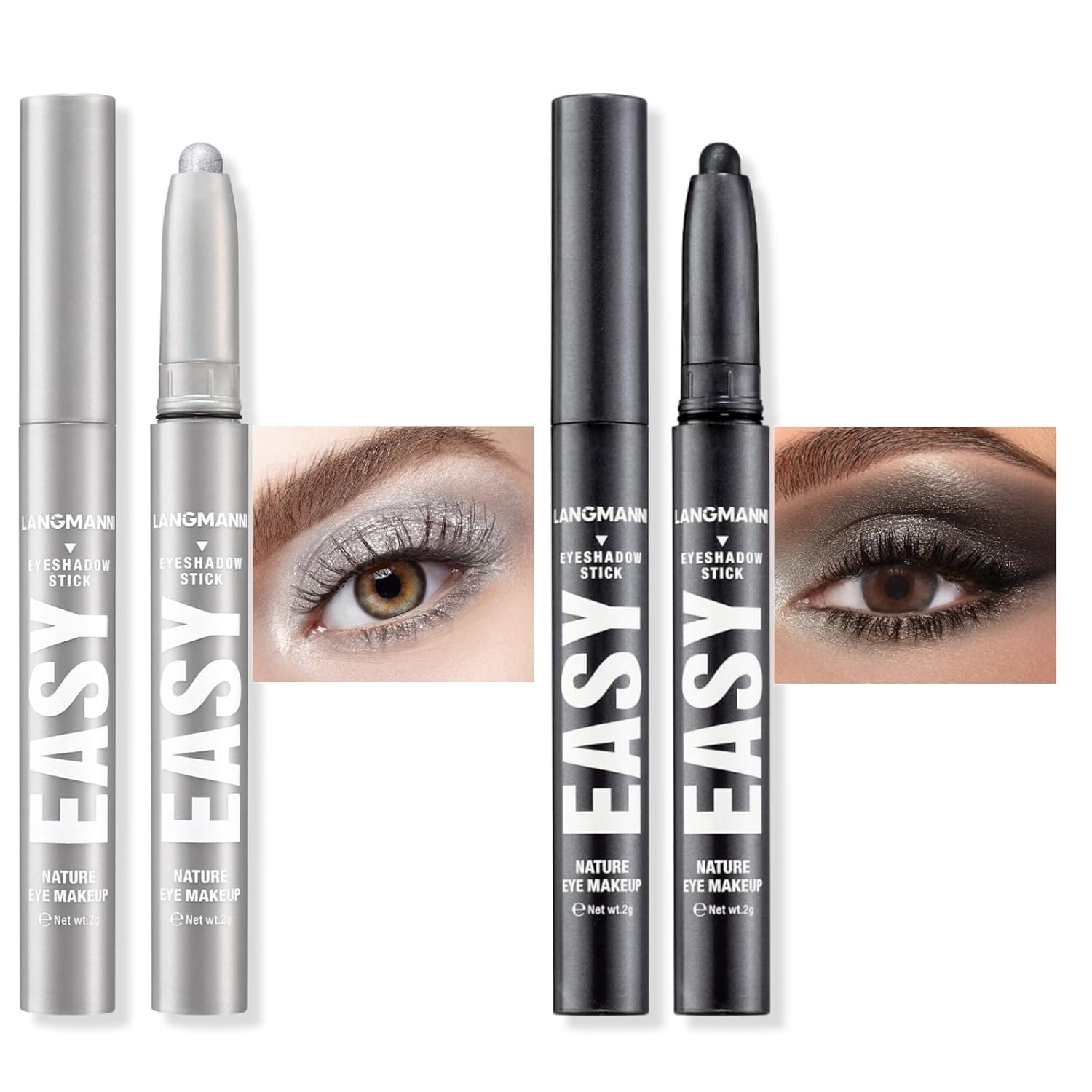 - Eyeshadow Stick Set: Matte eye shadow stick set 2 color and provide you a vivid bright eyes, eyeshadow sticks effectively highlight the eyes contour, create gorgeous eye makeup and make you be the eye-catcher in every occasion.