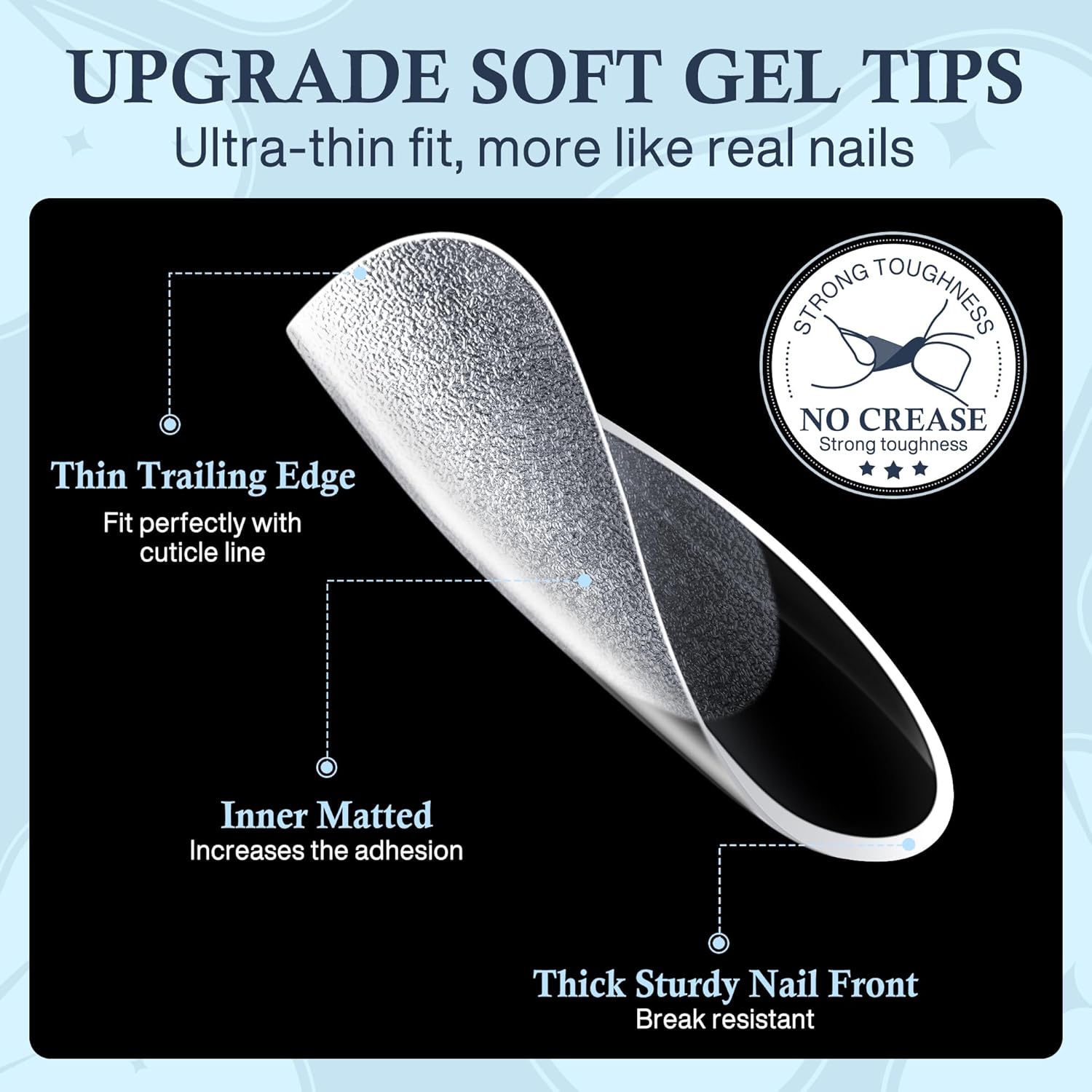 - ❤️ Wide Application: Luckyfairy Soft Gel Tips can be used for gel nail polish, acrylic nails, dip powder nails, poly nail extension gel, nail decorations, etc. Suitable for both DIY at home and professional nail salons.