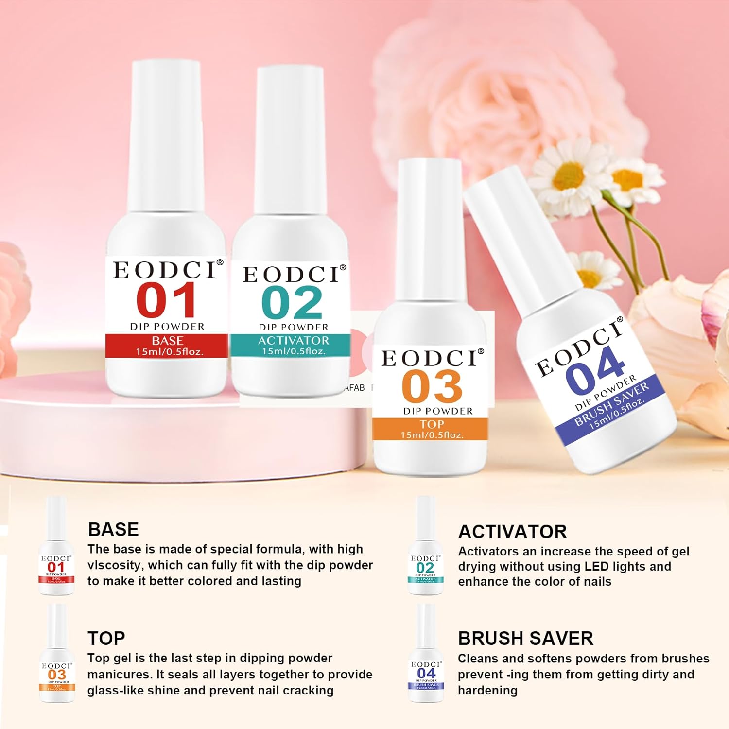 - 【No Lamp Needed】Eodci Nail Dipping Powder does not require UV/LED light to cure, is skin friendly while avoiding skin darkening and damage, safe and easy to use, suitable for beginners and professional nail salons.