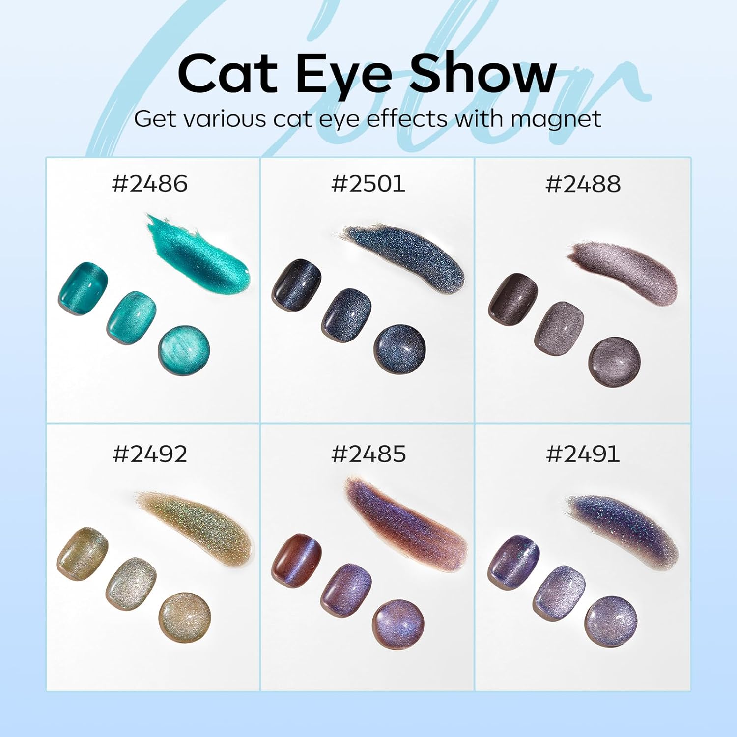 - Tips: Hold the magnet 3-5mm above the surface for 5-10 s to achieve your desired effect! Each Modelones 9D glassy cat eye gel polish is expertly mixed with metallic magnetic glitter powders for a shiny finish. Different angles create different visual effects