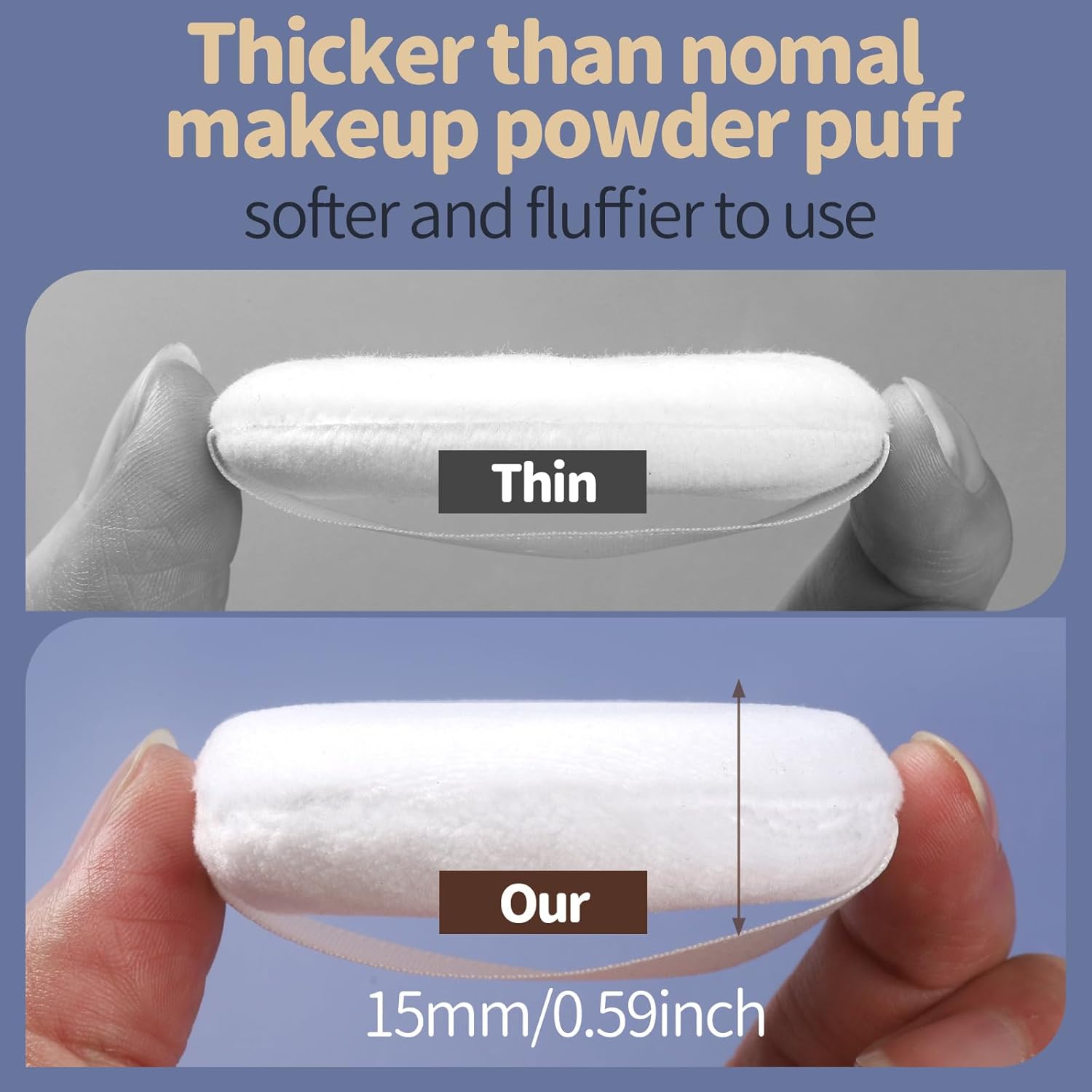 - Strong Grab Makeup Puffs: The fabric has 1.2 mm of fluff, can well catch and hold the powder, minimize the makeup wastage and evenly apply powder on your face. Our small powder puffs are hand-sewn and washable, and the sturdy ribbon design is easy for you to hold, ensure a better control and make a more precise apply. Essentials for your makeup routine