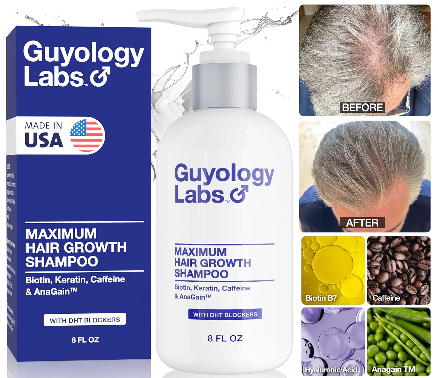 Hair Growth Shampoo For Men - for Thinning Hair - Natural DHT Blockers To Reduce Hair Loss - Biotin and Keratin Best for Growth and Thickening - Clinically Tested - Made in USA by Guyology Labs