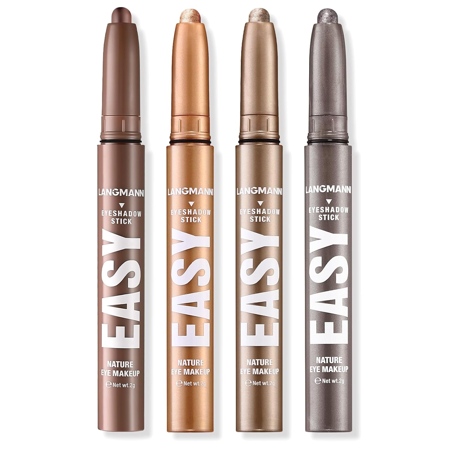 LANGMANNI Eyeshadow Stick,4 PCS Waterproof Multi-Color Eyeshadow Pen Set,Creamy Long-Lasting Eye Makeup Kit,Natural & Shimmer Shades Contour Stick,Gifts For Women (#6+10+11+21-4Colors)