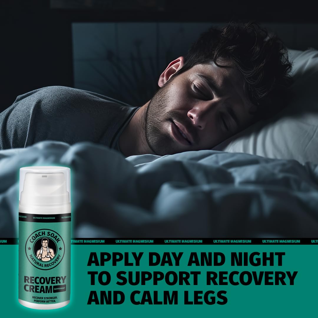 Coach Soak Recovery Bath Soak & Cream - Alternative to Epsom Salt Bath Soak - Fast-Absorbing Pure Magnesium Flakes with 21 Minerals, Bath Salts & Essential Oils - 2 Pack - Cooling Peppermint