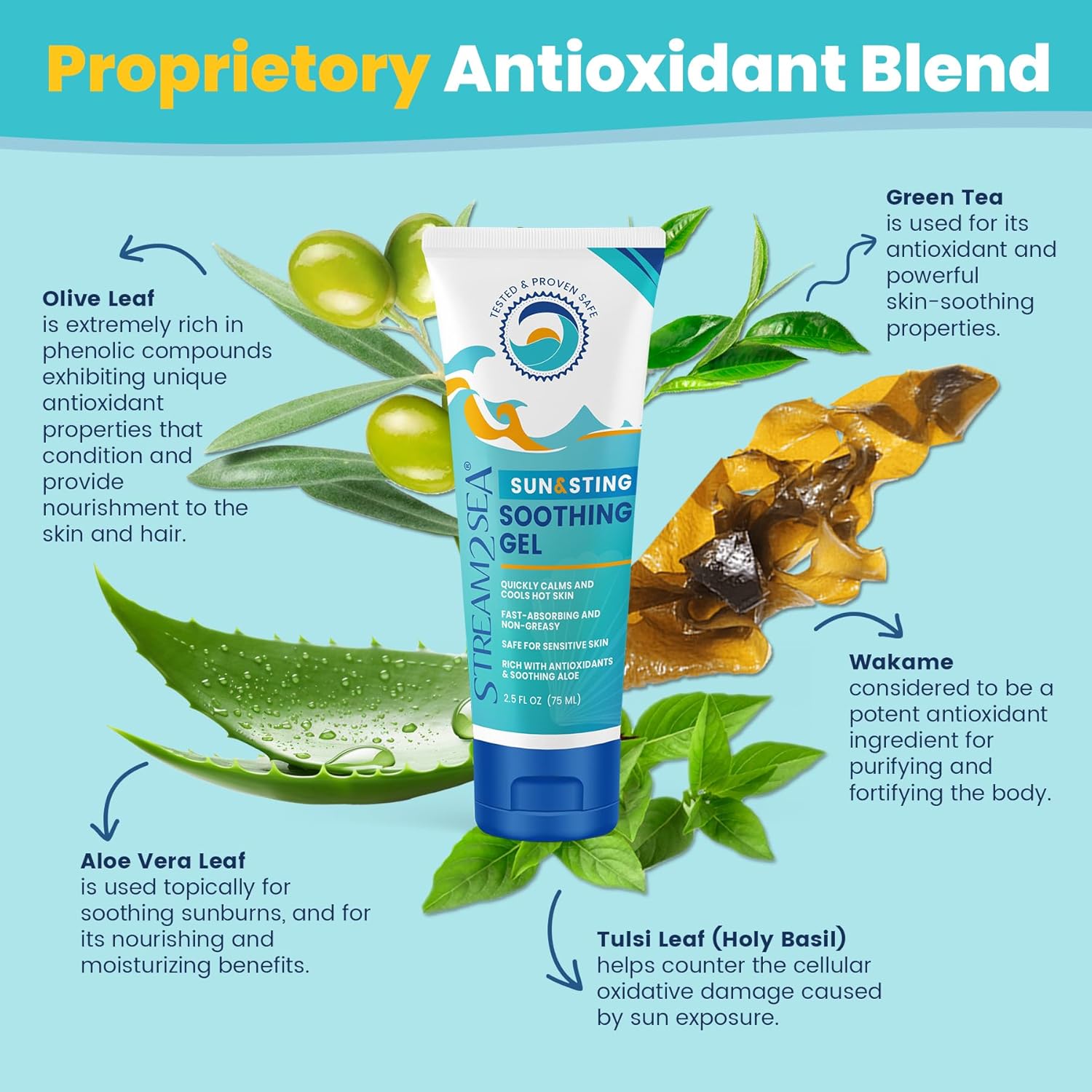 - NATURAL SUNBURN RELIEF: Trusted for its high-quality ingredients, Stream2Sea’s after-sun gel is the best choice for sunburn relief. It hydrates, heals, and soothes your skin naturally, promoting a quick recovery.