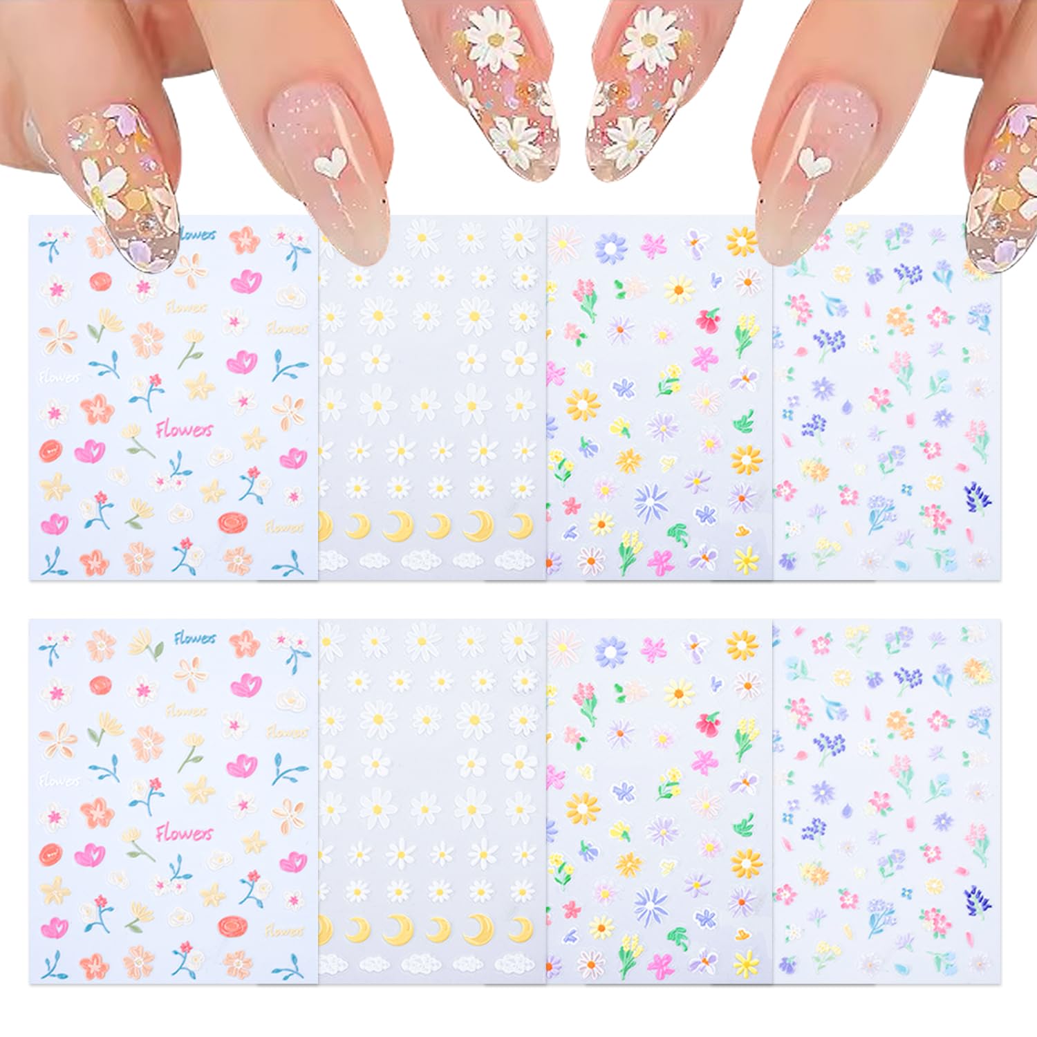 - 3d Flower for Nails Design - Featuring a plethora of patterns and trendy color combinations, various of flowers, daisy, leaf and cute moon, make it easy for you to design beautiful nail art.