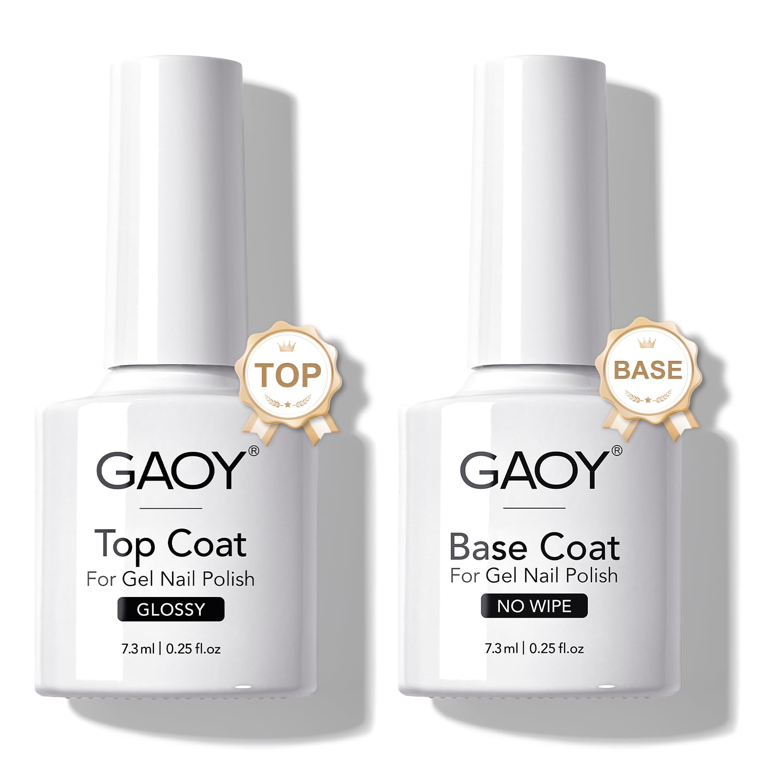 GAOY Gel Top Coat and Base Coat Set, 2 Pcs 7.3ml Glassy Top Coat and No Wipe Foundation Combination for UV Light Cure Gel Nail Polish