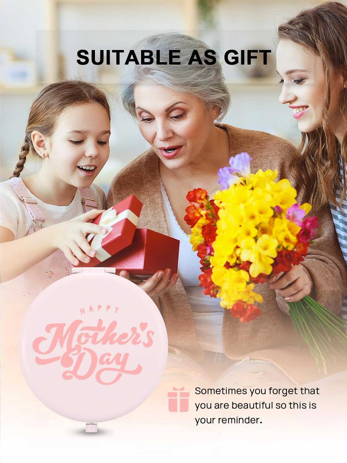 Compact Mirror for Purse, Pack of 24 Double-Sided 1X/2X Magnifying Round Metal Pocket Makeup Mirrors (Round, Pink Marshmallow)