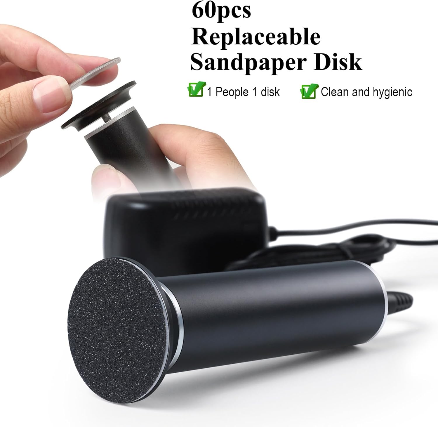 Electric Callus Remover Foot Scrubber, Adjustable Speeds Electric Foot File Sander Grinder Pedicure Tools for Feet Dead Skin Remover with 60 Replaceable Sandpaper Discs, Black