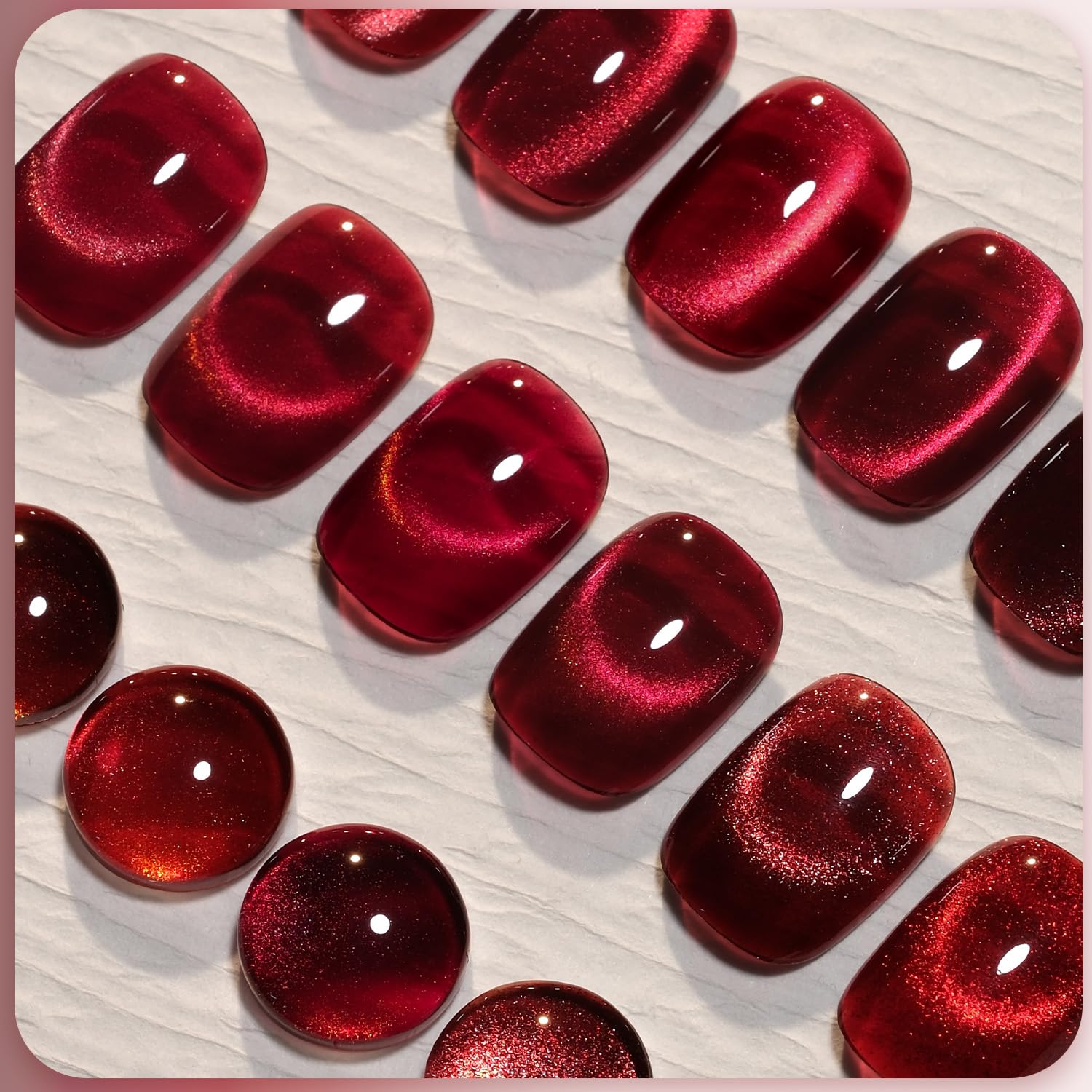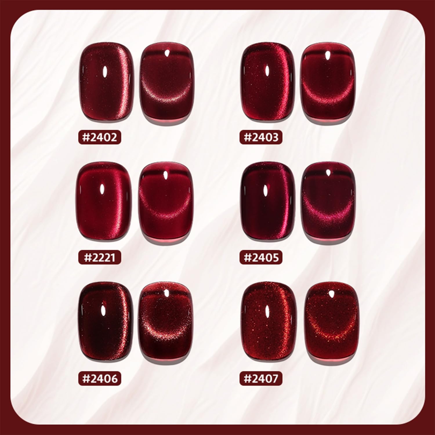GAOY Jelly Red Glitter Cat Eye Gel Nail Polish Set with Magnet 6 Types of Holographic Cat Eye, Salon Gel Manicure and Nail Art DIY at Home