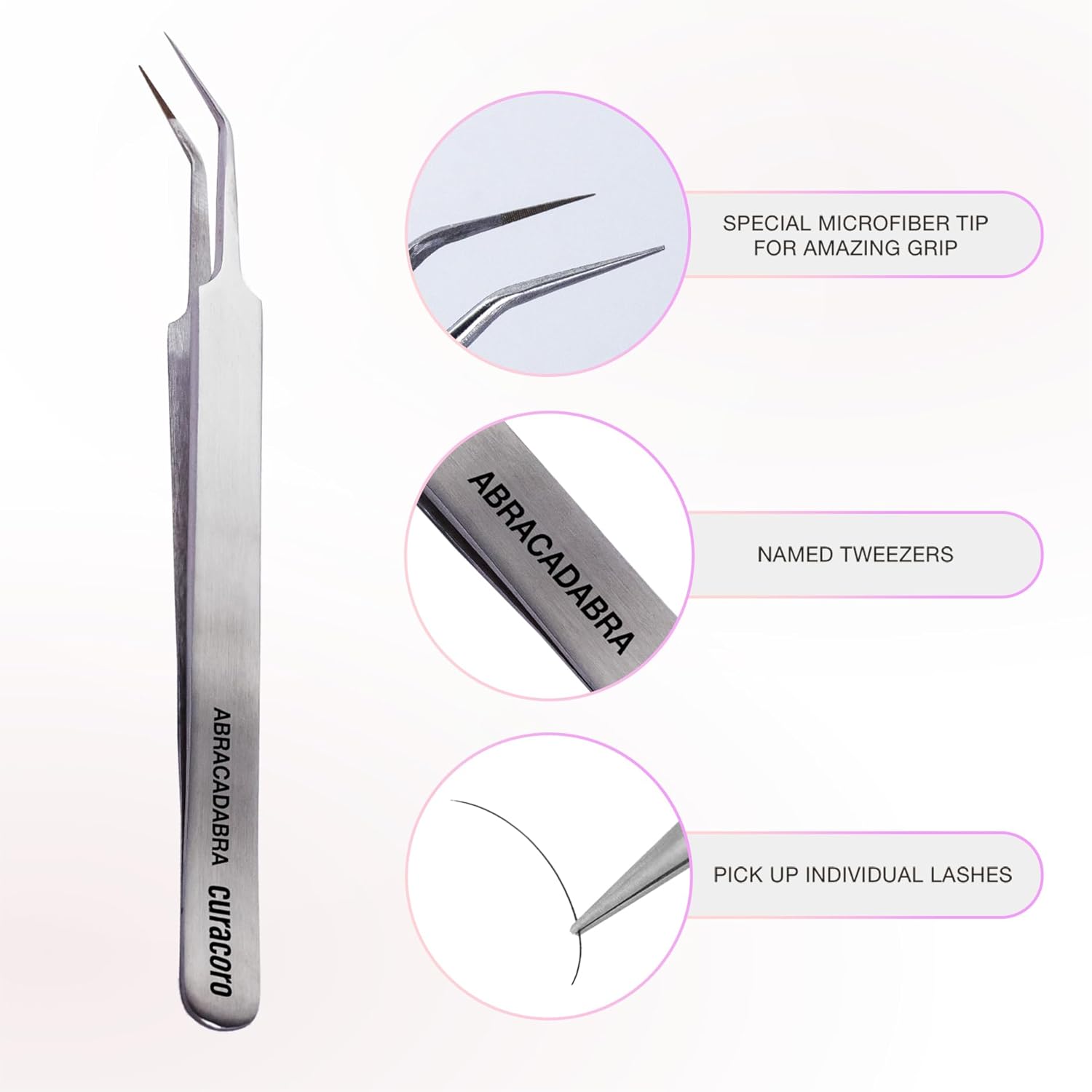 Curacoro Lash Tweezer - Professional & Precision Fiber Tip Grip Lash Tweezers for Eyelash Extensions, Multi Shapes & Purposes Tweezers for Volume, Isolation & Classic Lashes (Silver, Abracadabra)