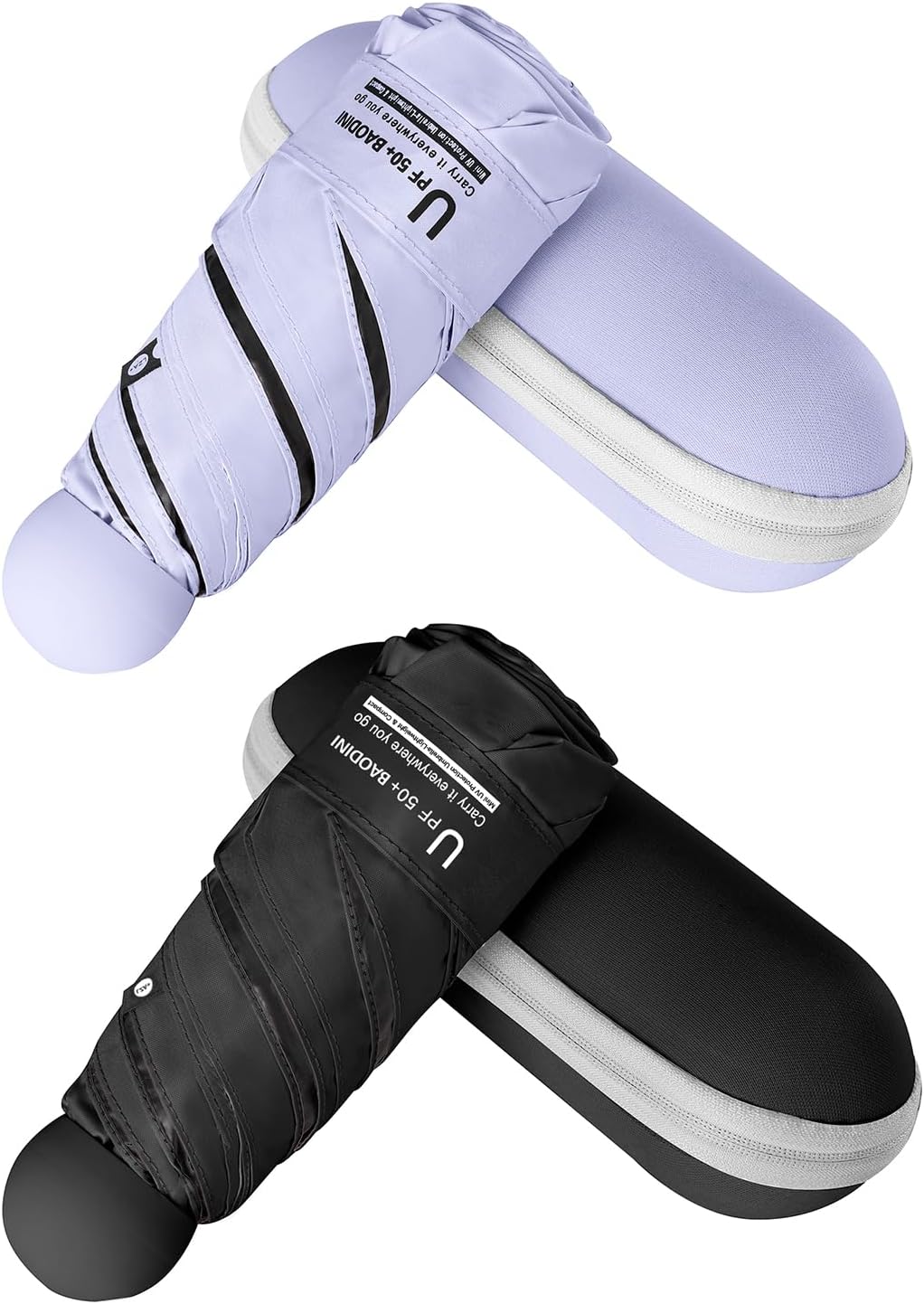 BAODINI Travel Essentials Mini Umbrella for Purse With Case Small Compact UV Sun Protection Lightweight Tiny Pocket Manual Open Close Umbrella for Women Kids and Men Fit Purse Backpack