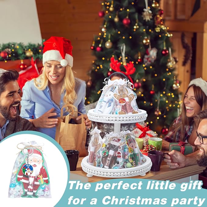 - What Will Get: there are 50 sets of Christmas favors, including 50 lip balm bulk with cute packaging, 5 different styles, corresponding to 5 scents of mint, mango, pomegranate, vanilla and green tea, 50 keychains in 5 styles, and 50 transparent organza bags, sufficient quantity to meet your daily use and gift needs