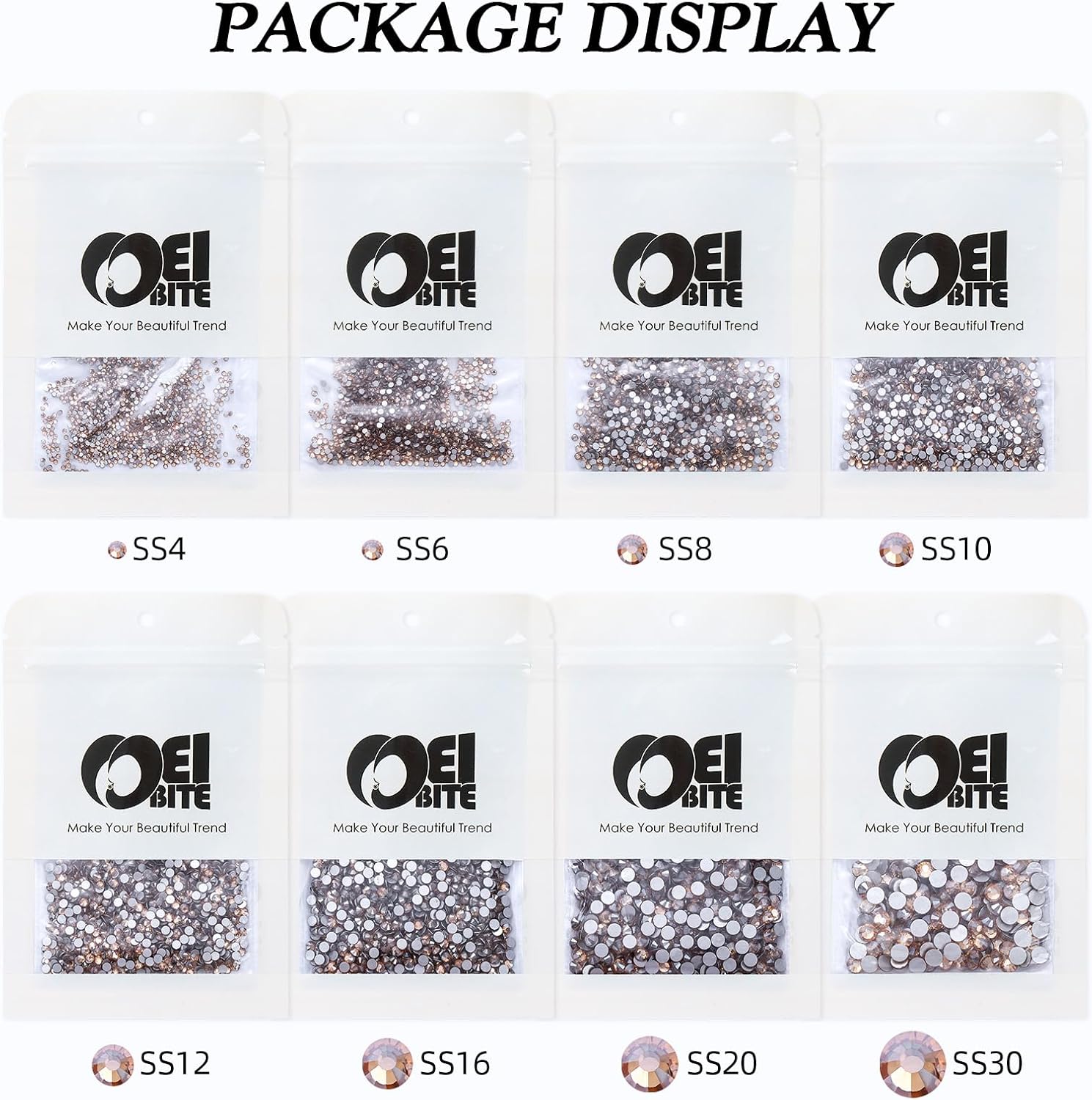 - Product Packaging: Bags packaging SS8 2.3~2.5 MM - 1440 Pcs Gold shadow flatback rhinestones