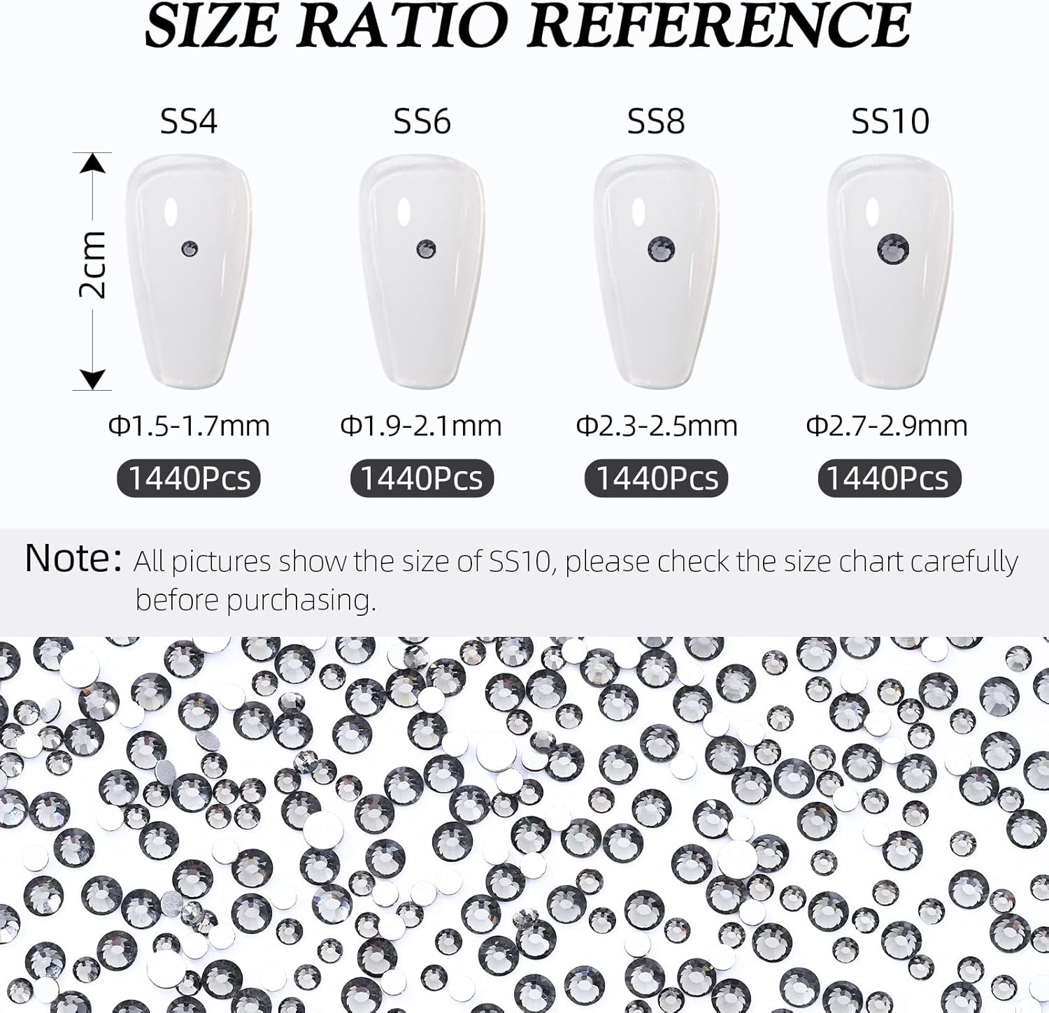 Gray Flatback Rhinestones, Glass Rhinestones for Nail Art and Craft, Glue Fix, Loose Crystal Gemstones(Gray, SS10, 1440pcs, 2.7-2.8mm)