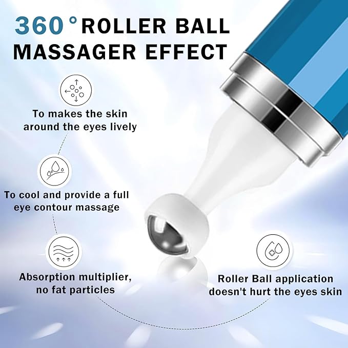 - 【Gentle and Easy to Absorb】Caffeine eye cream adopts a natural and gentle formula,with a moisturizing and refreshing texture.The unique 360° roller design can massage the eye skin to promote absorption