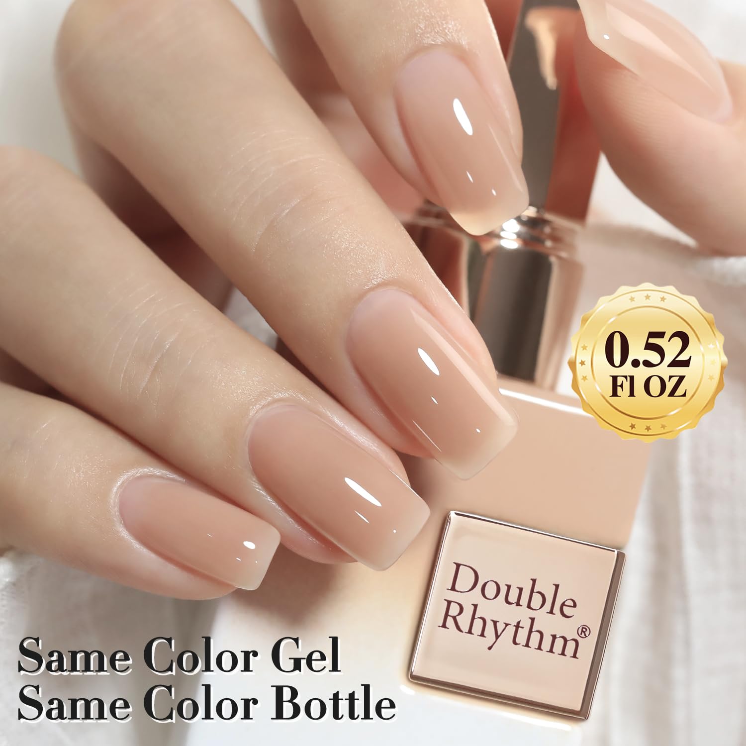 Double Rhythm Translucent Gel Polish Sheer Neutral Natural Light Milky Same Color Same Bottle 15ML Jelly UV Nail Polish Nail Art DIY at Home (Light Cinnamon-A1483)