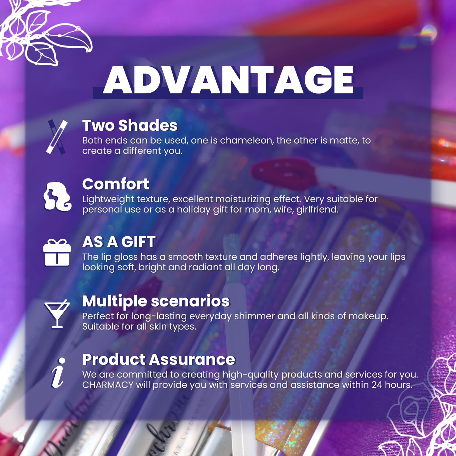- Multiple Scene Options: Whether it is daily light makeup or heavy party makeup, this lip glaze can add a touch of moving color to you. Let us work together to interpret our own charm and story with lip color!