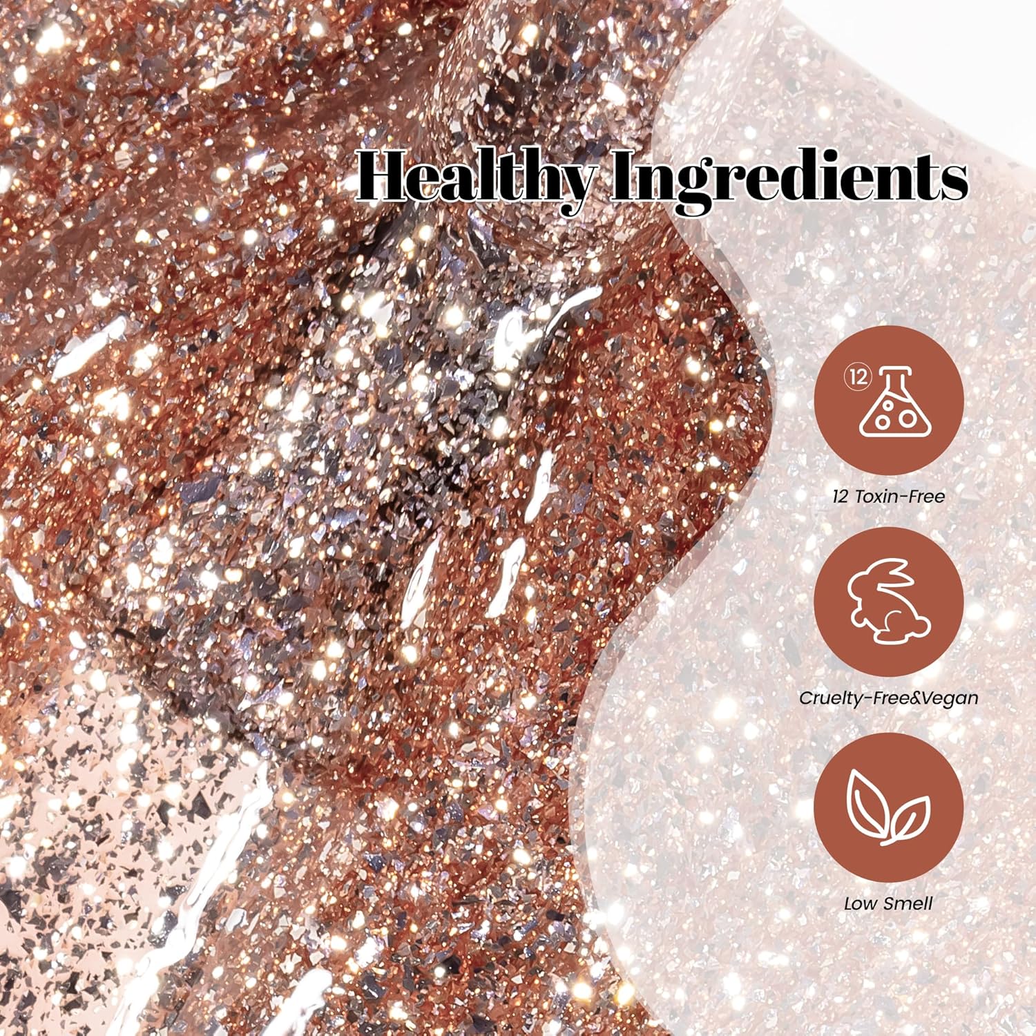 YTD Likomey Gel Nail Polish,15ml Rose Gold Glitter Nails Gel,Fall Winter Shiny Sparkly Salon Home Pink Shimmer Flakes Manicure UV Color Varnish,SF439