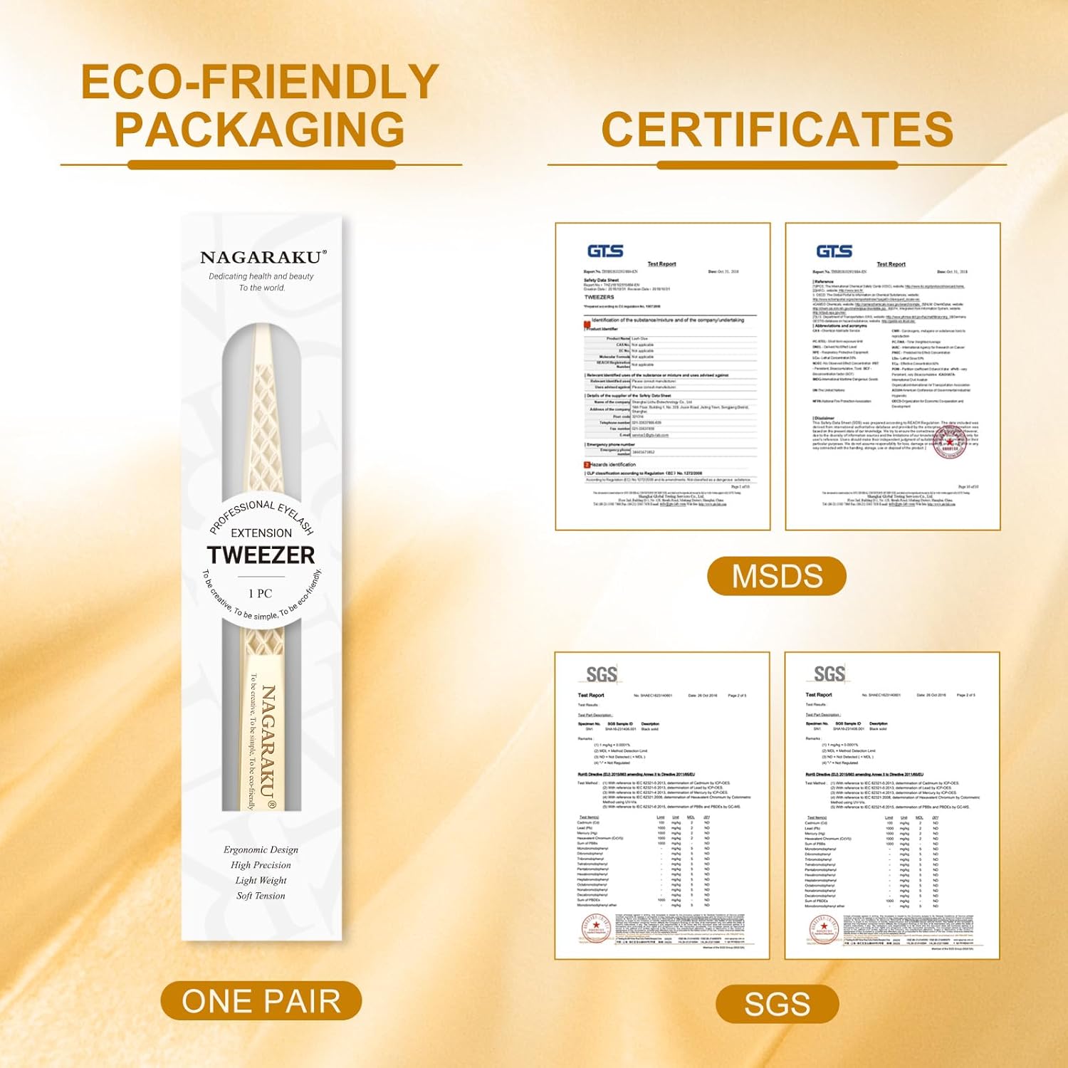 NAGARAKU Eyelash Tweezers, Precision Fiber Tip Tweezer for Eyelash Extensions Diamond Grip Anti-Static Anti-Slip Premium Gold Stainless Steel Pointed Lash Tweezers -Straight Tip Classic Tweezer AG-03