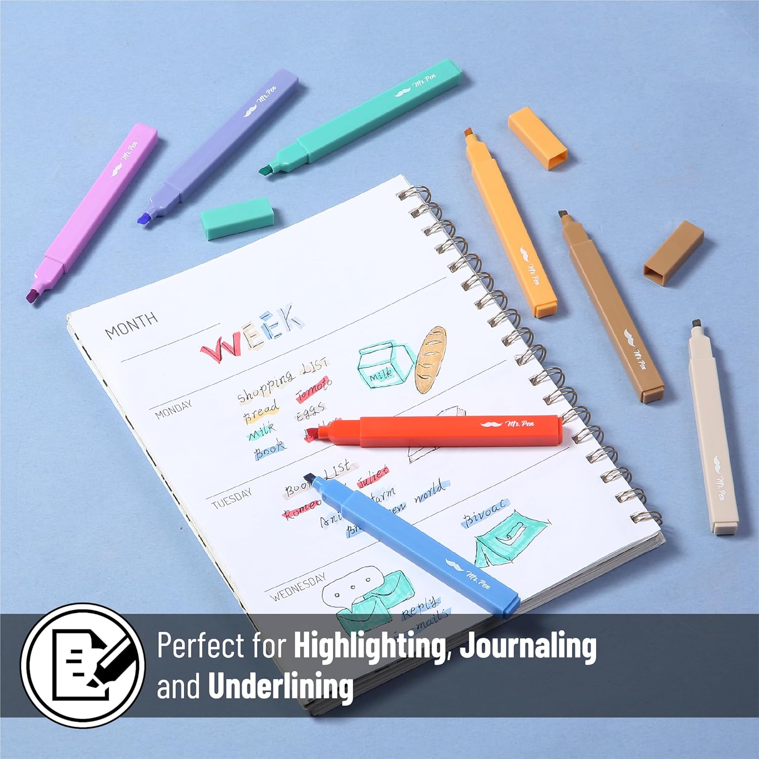 - Mr. Pen aesthetic highlighters come in a set of 8 vibrant rainbow-inspired colors to elevate your writing and highlighting.