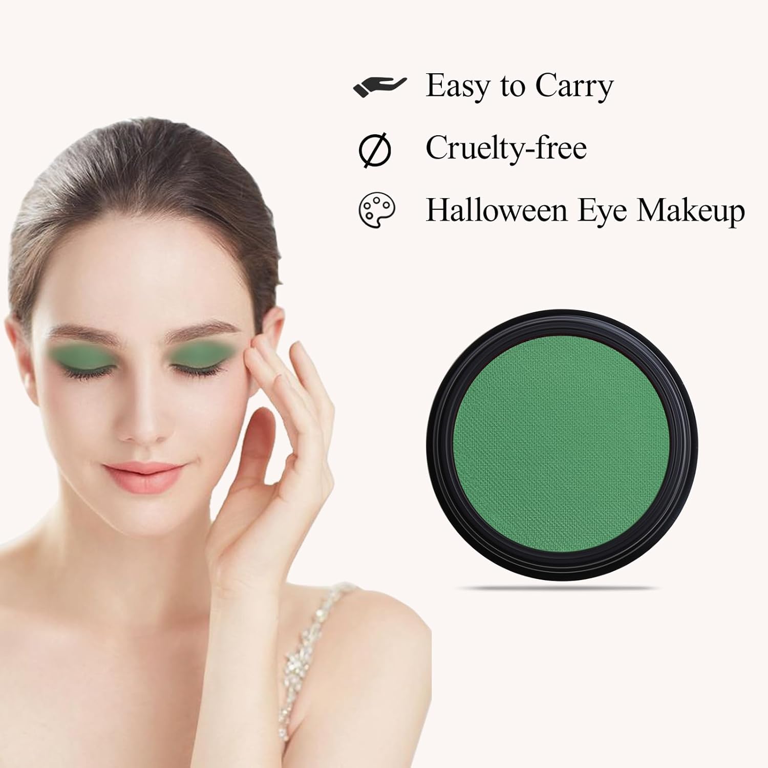 Single Green Eyeshadow, Pressed Powder Matte Eye-Shadow Palette Make-up, Blendable Long Lasting High Pigment Green Eye Makeup Halloween Paint & Face Body Paint