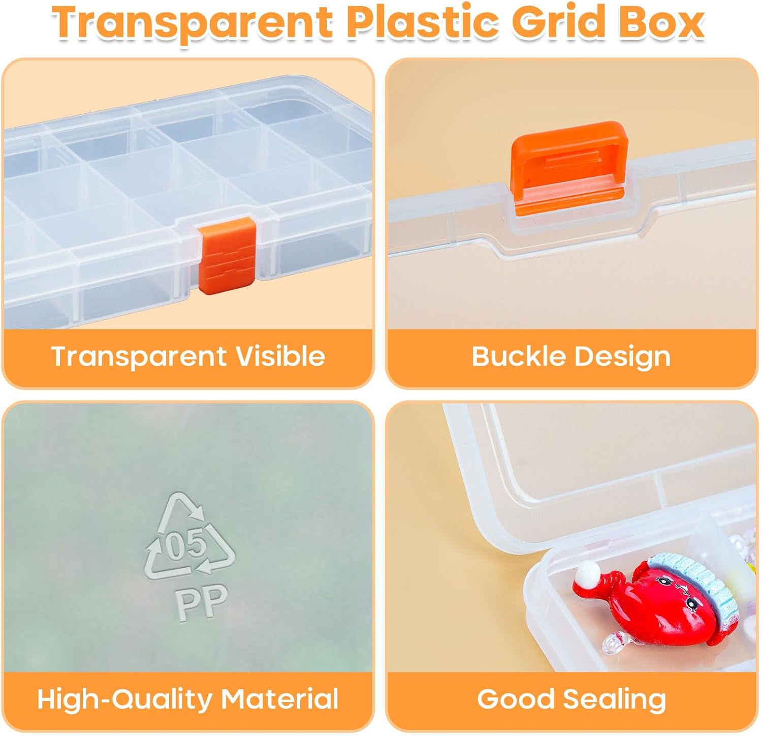 8PACK Extra Thick Bead Organizers, Mini Clear Plastic Storage Box Craft Containers for Nail jewelry rhinestones DIY Supply Case