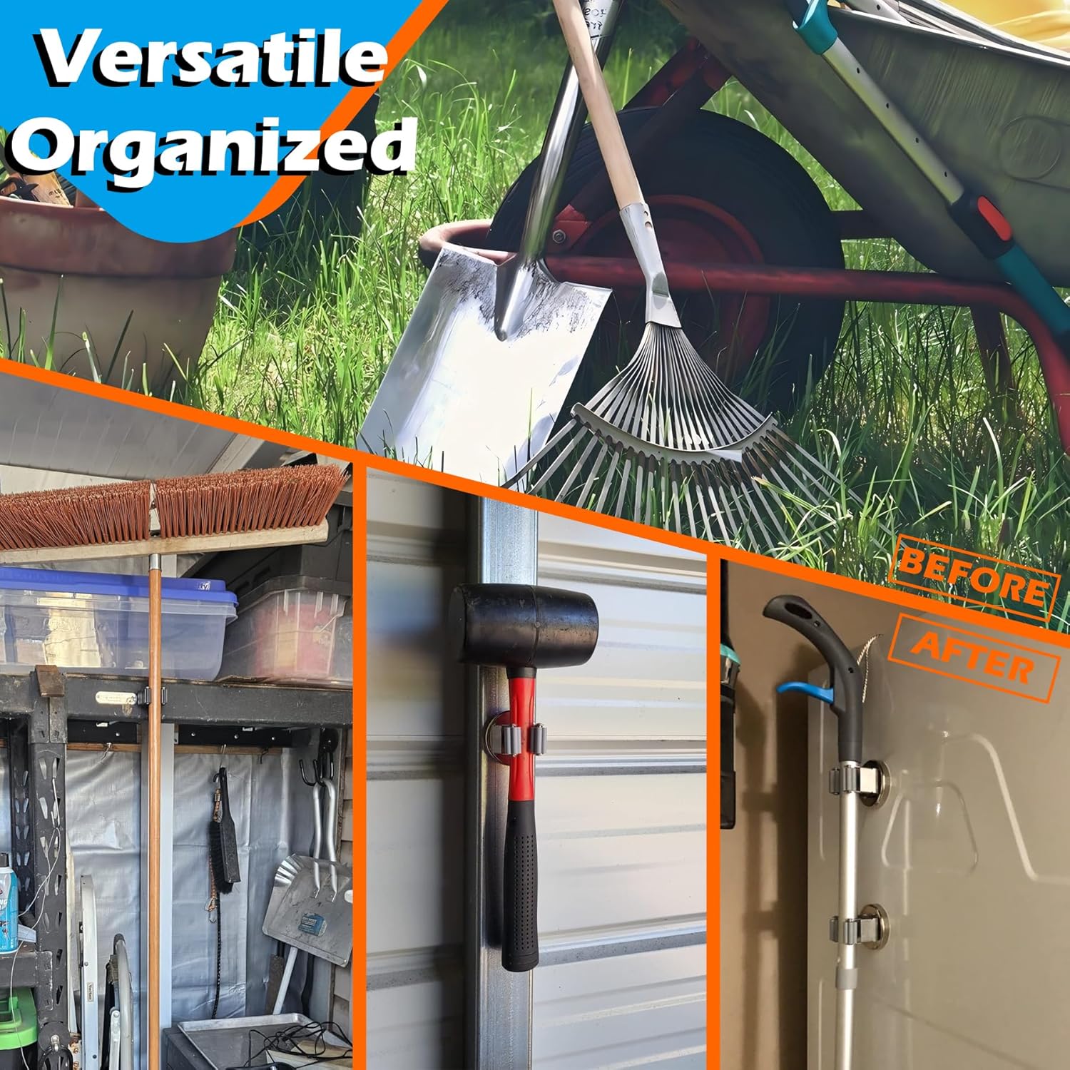 - [Easily Mount Tool Racks] Benefiting from a triangle buckle, the magnetic broom holder can adjust size automatically based on the different thicknesses of the handles to keep your tools in place and guard them against falling off