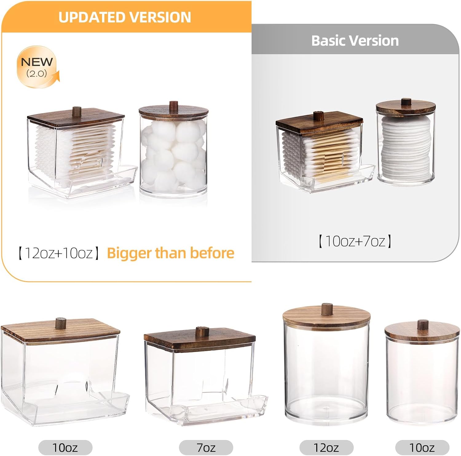 - Bigger than Before - Compared to the previous one, this one is bigger, 1pcs Qtip Dispenser - 10oz , 1pcs Cotton Ball Holder - 12oz. Putting&Picking cotton swabs more easier