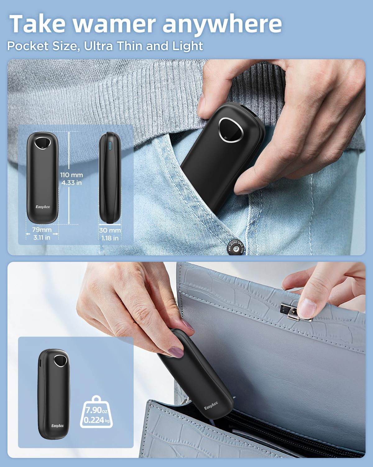 - 【A Heartfelt Gift for Cold Hands and Raynaud's Patients】Warm their hearts and hands with EasyAcc 2 pack rechargeable hand warmer, the perfect gift for those with Raynaud's disease or perpetually cold hands. Lightweight and rechargeable, it's ideal for home, work, or on-the-go. Give the gift of warmth and show your loved ones they’re truly cared for—because everyone deserves a little extra comfort this winter!