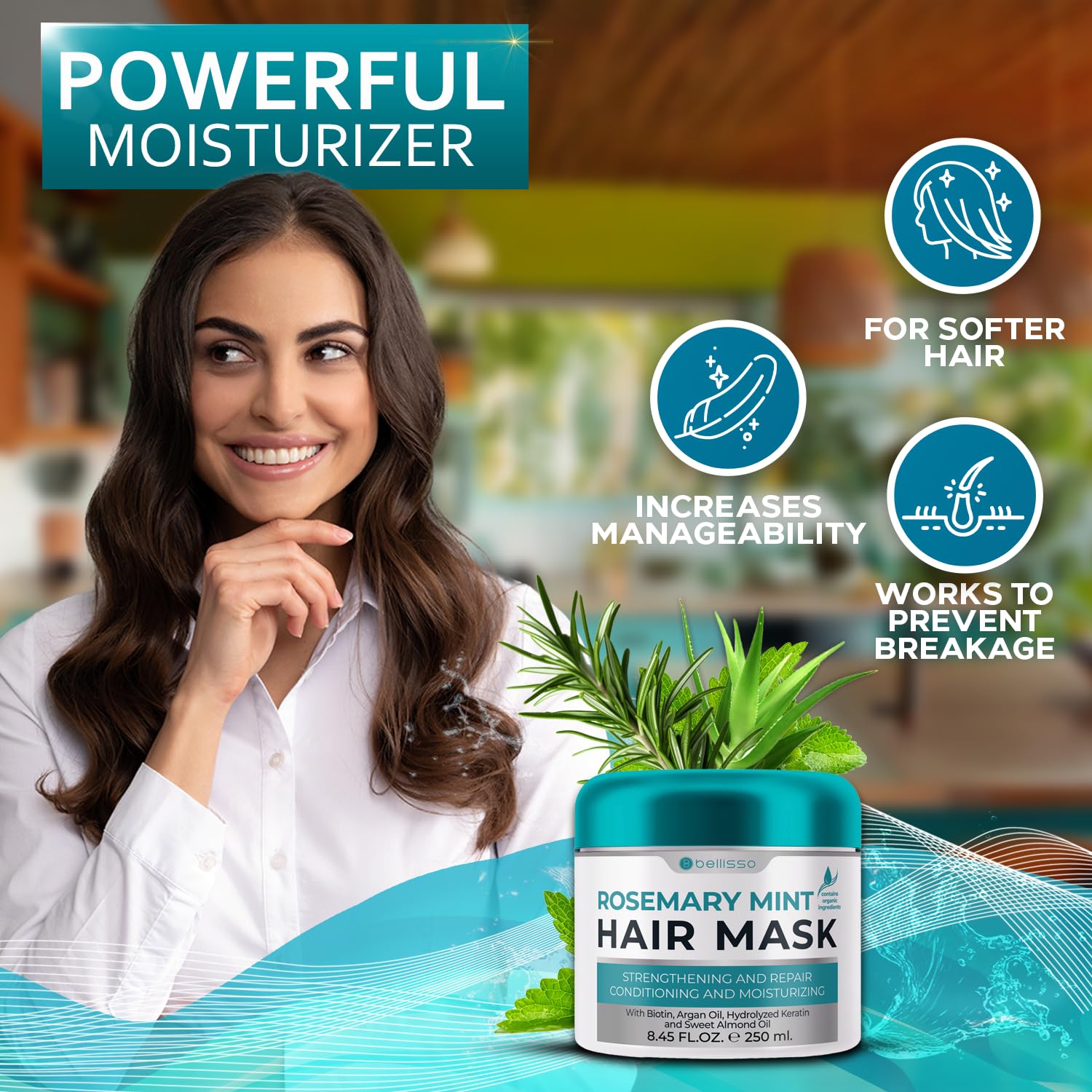 - DEEPLY HYDRATING: People love how Bellisso’s rosemary mint oil hair mask helps restore dry and brittle locks. This deep conditioning hair mask reverses the signs of damage by penetrating beyond the outer cuticle to deliver essential nourishment that promotes shine. Make broken strands a thing of the past with this premium hair moisturizer from Bellisso.