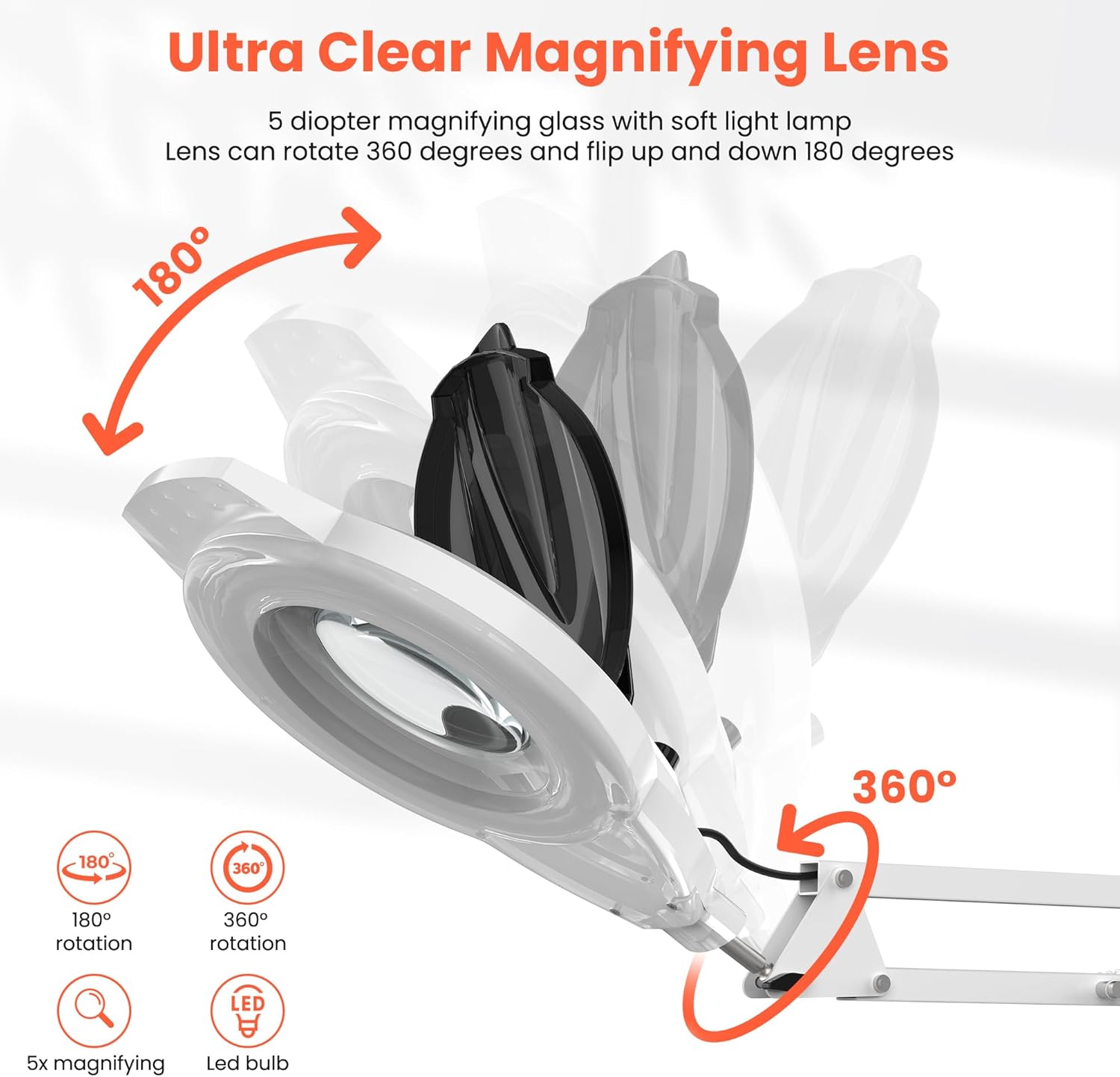 - 5X Magnifying Lamp: Elevate your skincare routine with our LED beauty tool featuring a 5X magnifying lens. Adjust brightness for gentle illumination, protecting your eyes. Enjoy crystal-clear facial magnification, revealing skincare details like never before